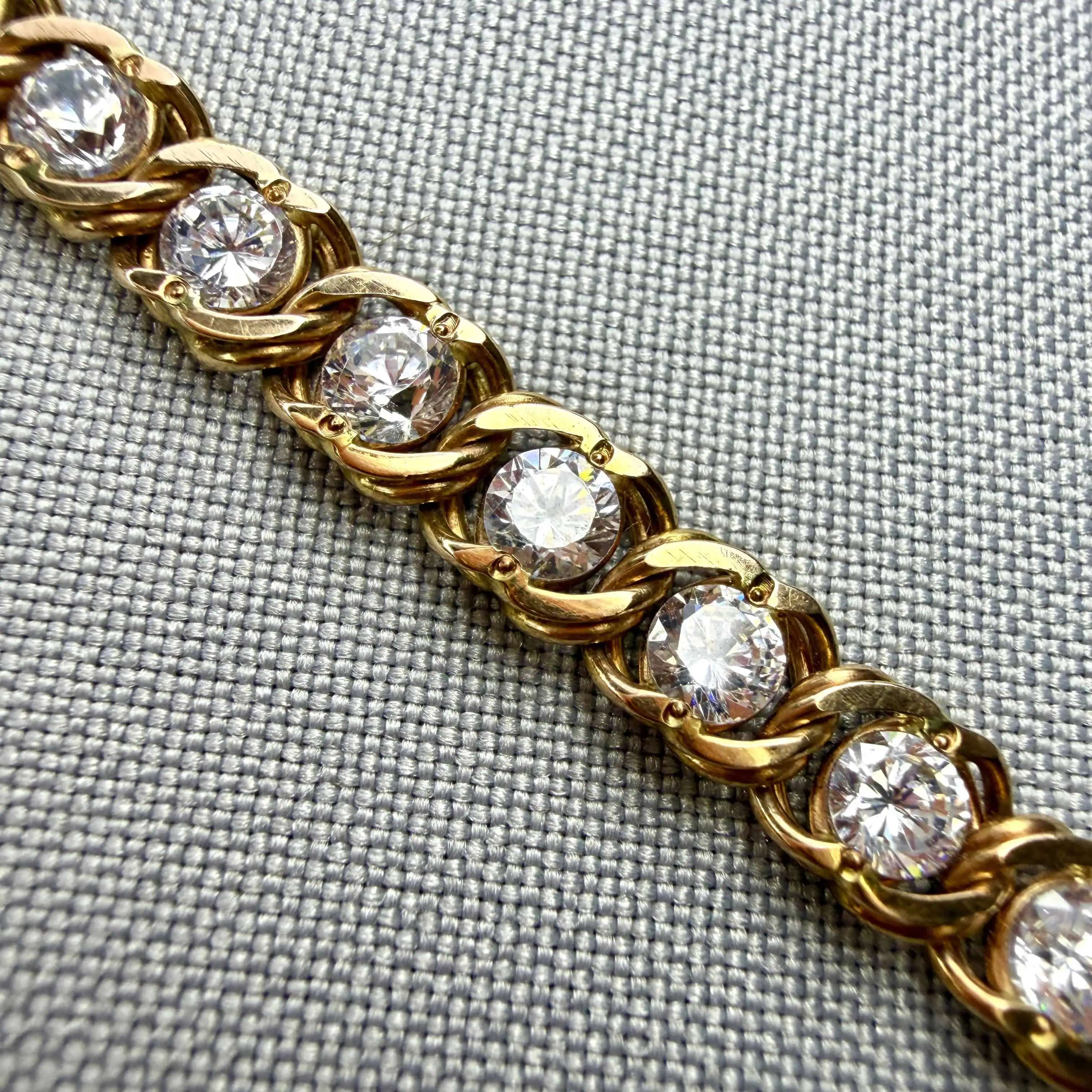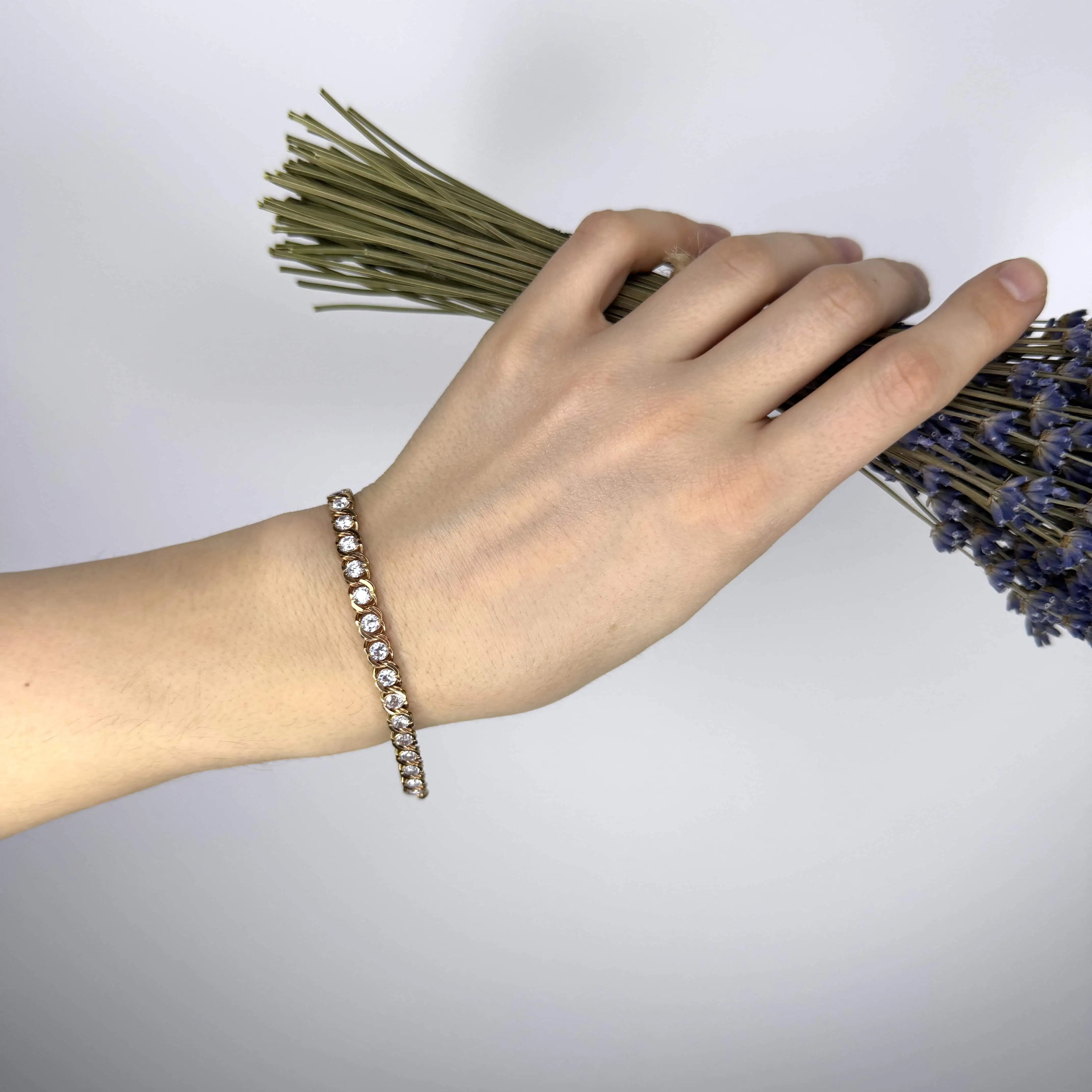 Золотий браслет "Струмок" - це грація на вашому зап`ястку, а блискучі циркони додають сяйва.