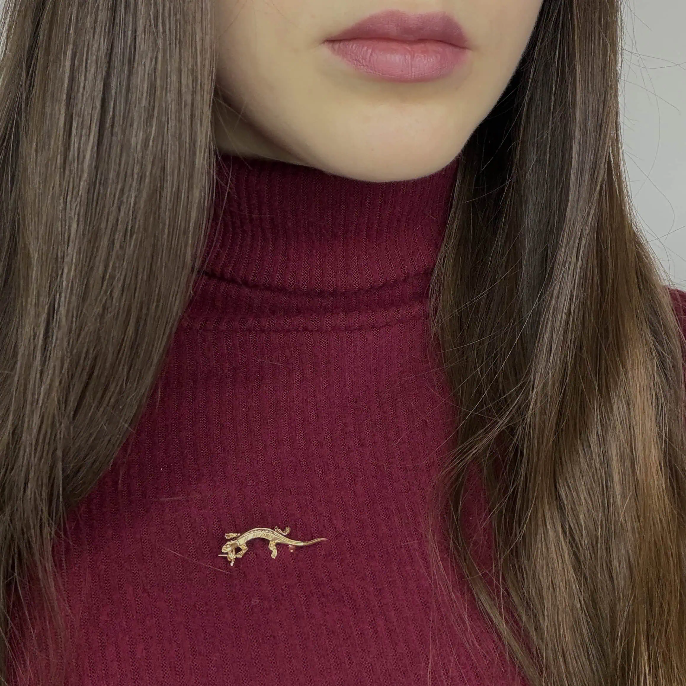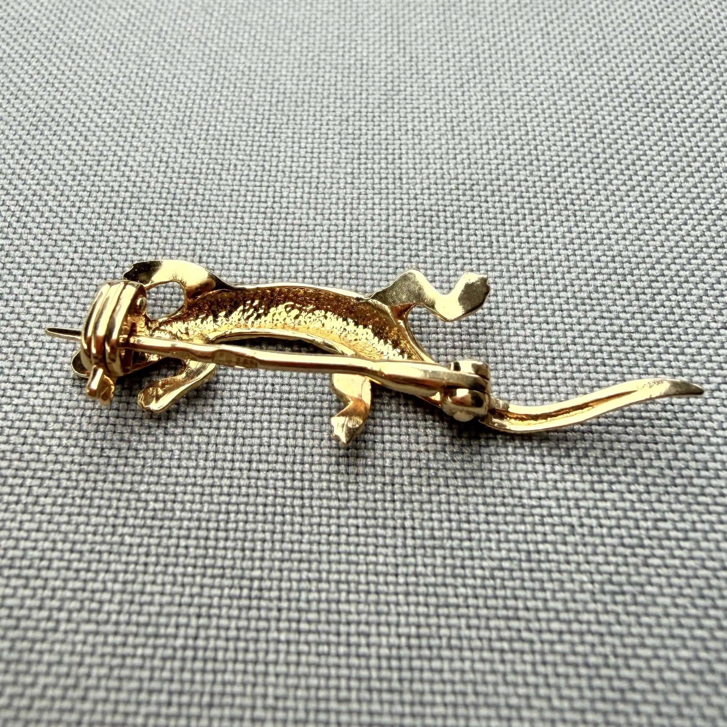 Золота брошка "Саламандра" - це тварина, яка ніби застигла перед стрибком, на вашому одязі. Стильна та мила, виконана в червоному золоті.