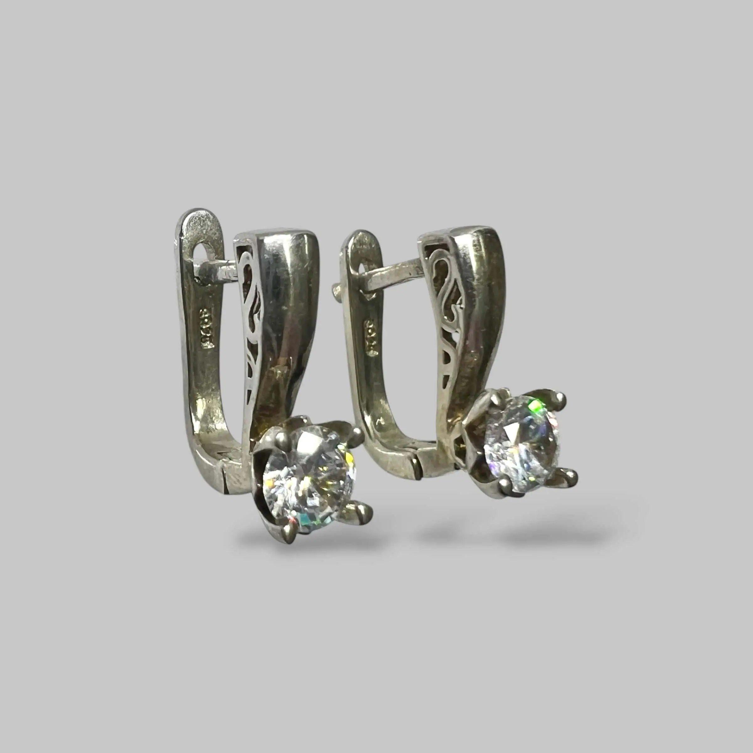 Класичні сережки 925 проби з англійською застібкою. Великий прозорий фіаніт у надійній крапановій оправі забезпечує максимальне сяйво та елегантність образу.