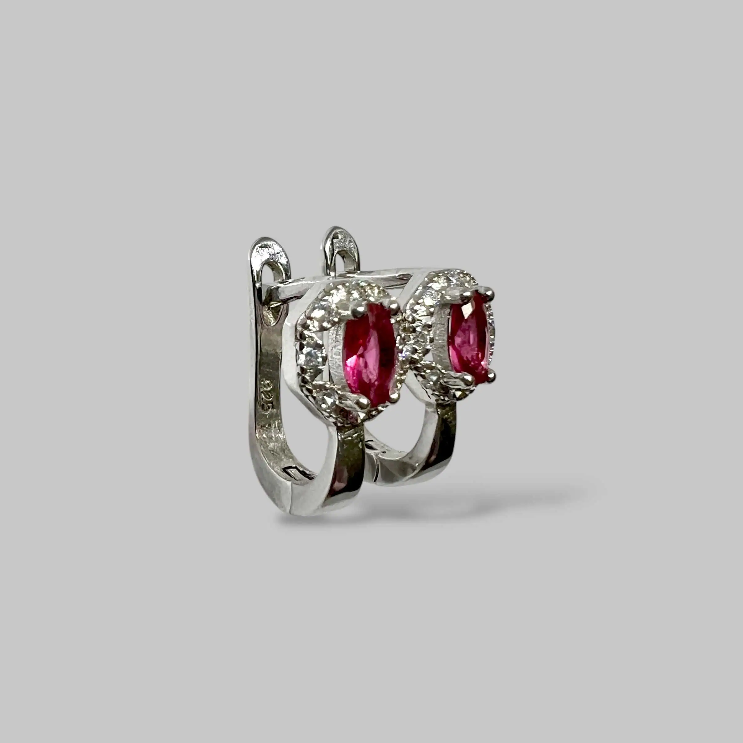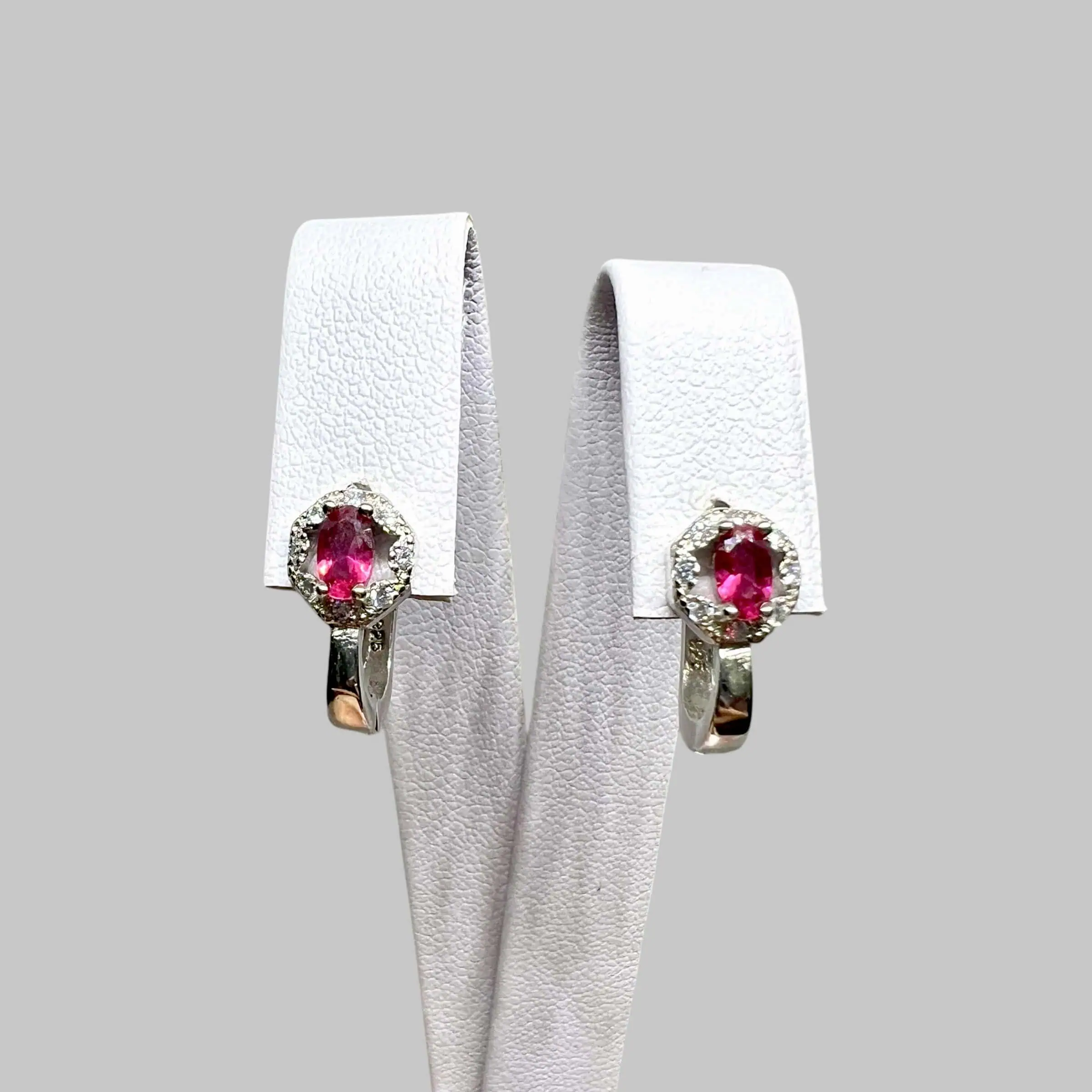 Вишукані сережки 925 проби з англійською застібкою. Центральний овальний камінь у ніжному рожевому відтінку обрамлений сяючим колом цирконів, що додає виробу особливого шарму.