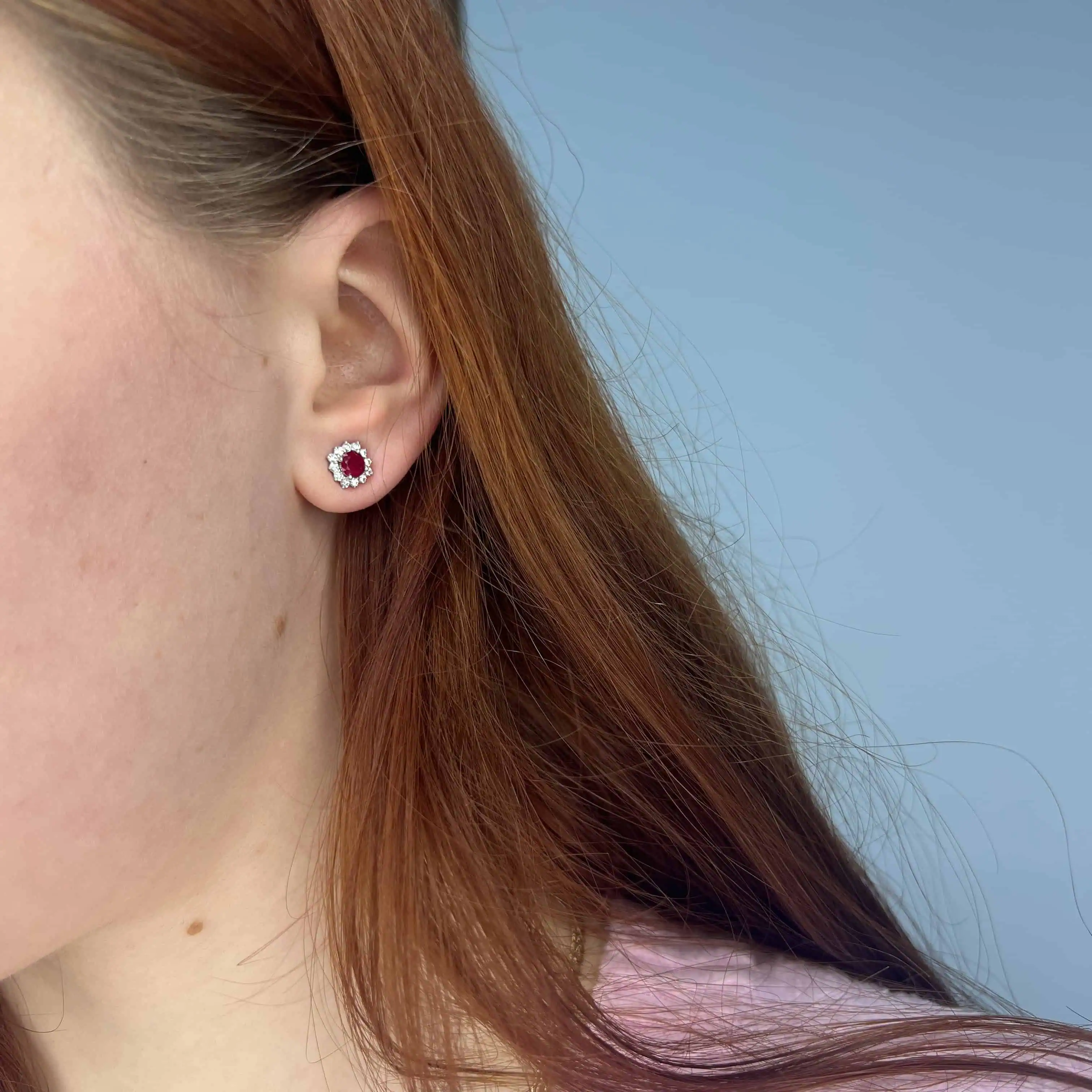 Центральний кристал насиченого червоного кольору у формі кола притягує погляд своєю глибиною, що нагадує благородний рубін.