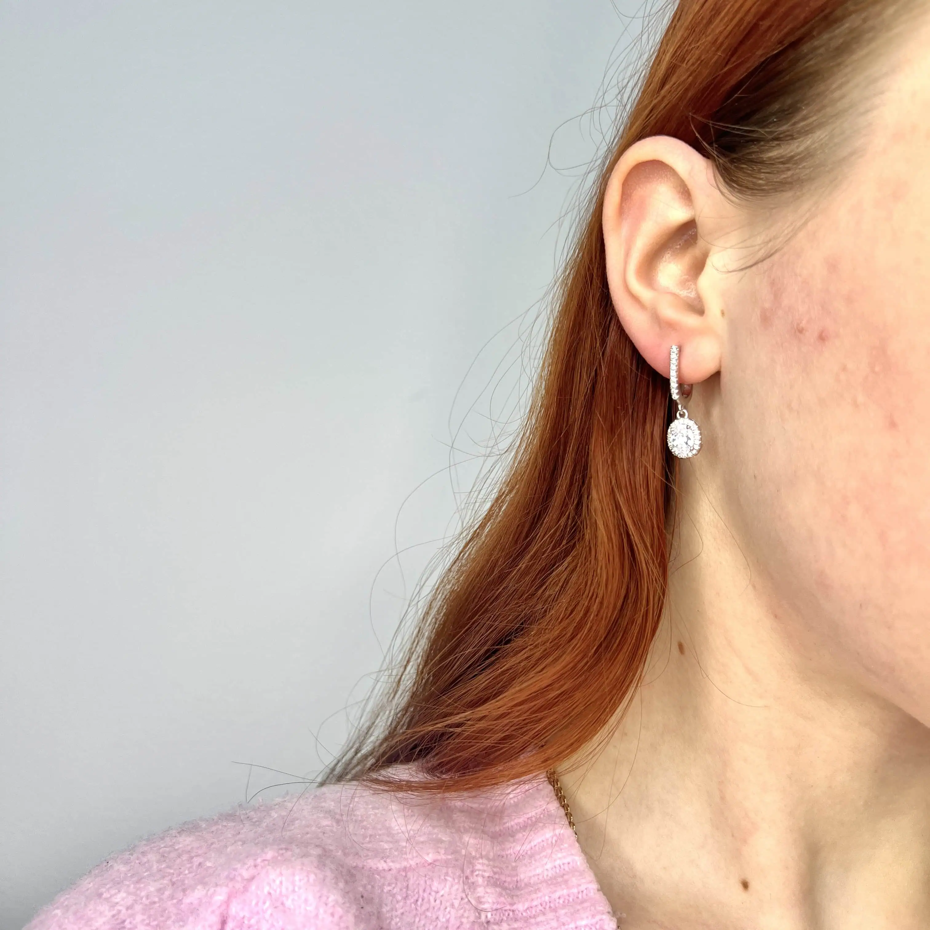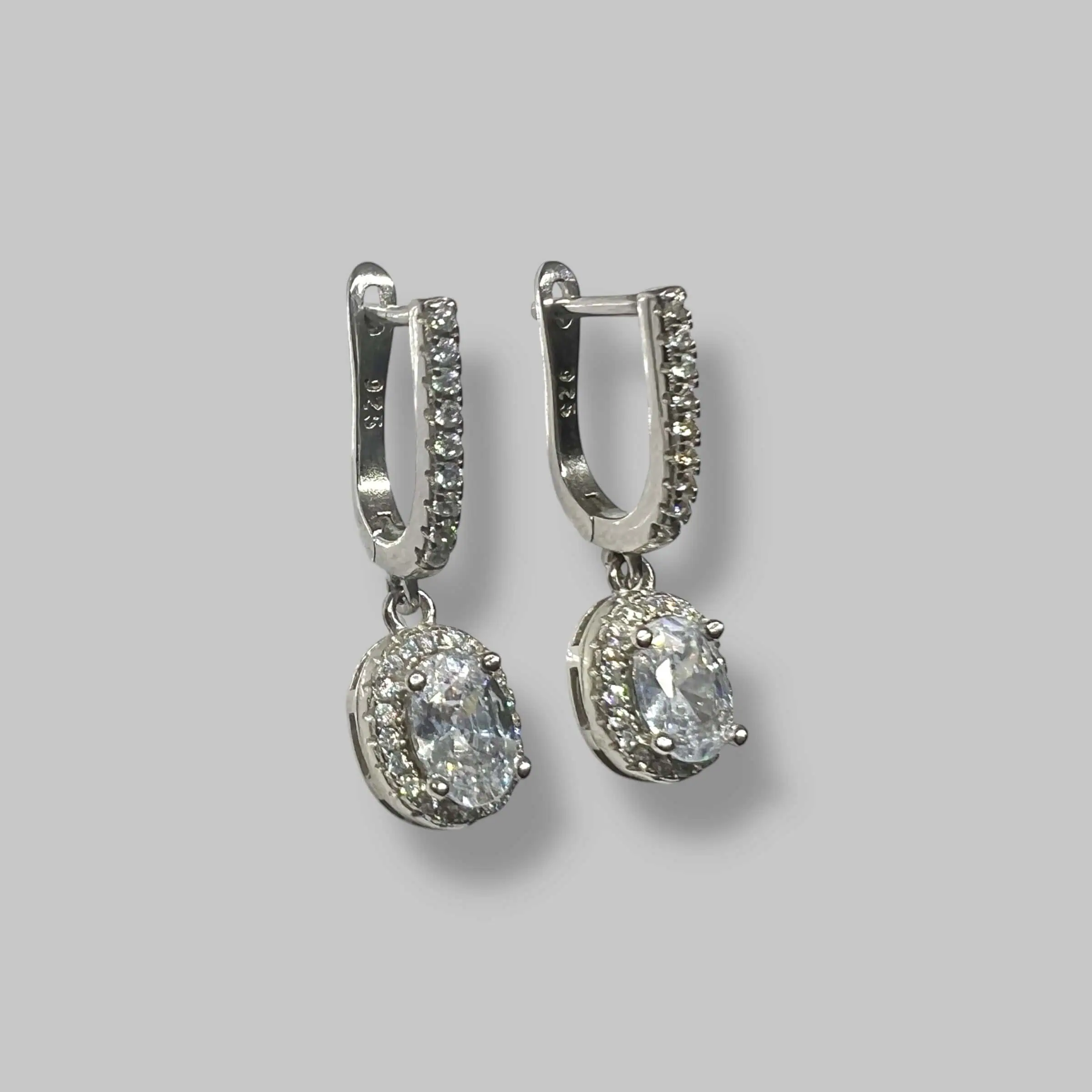 Витончені срібні сережки 925 проби з англійським замком. Овальна підвіска з великим центральним каменем в оточенні дрібних цирконів створює розкішне сяйво та класичний образ.