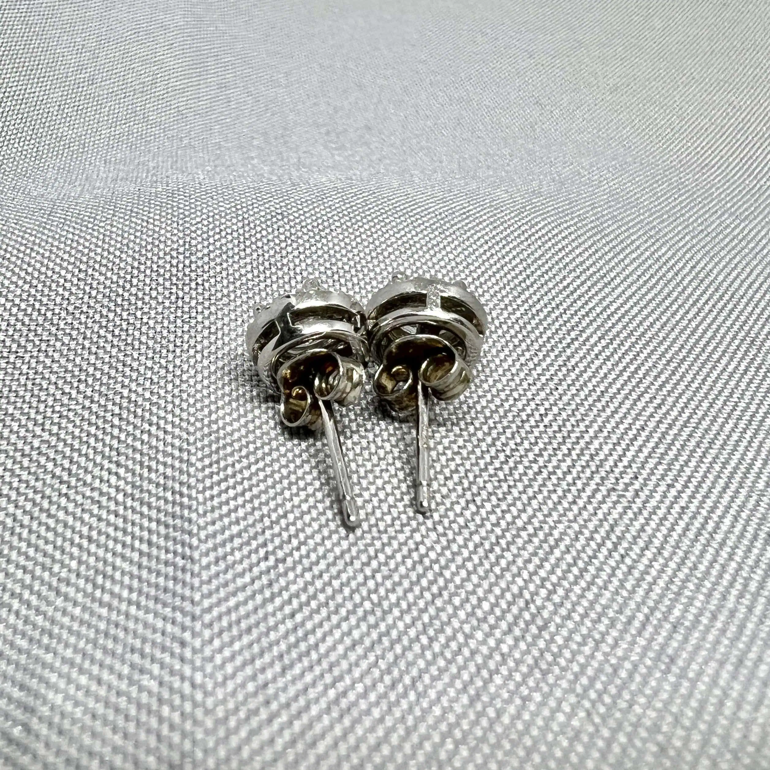 Вишукані та об'ємні сережки зі срібла 925 проби, що мають складну динамічну форму. Дизайн побудований на поєднанні двох дуг: одна — гладка дзеркальна, інша — інкрустована камінням, що створює ефект елегантного переплетення.
