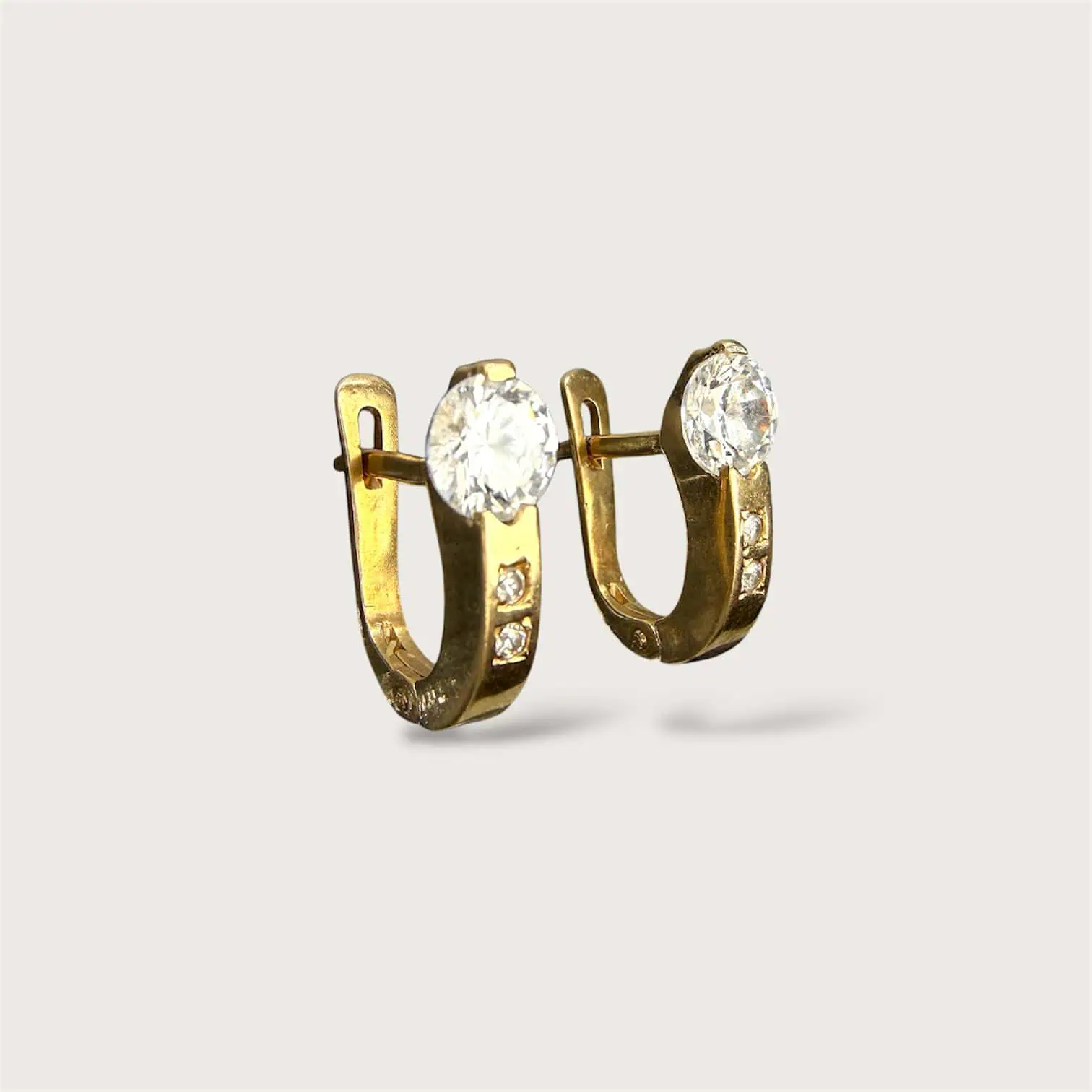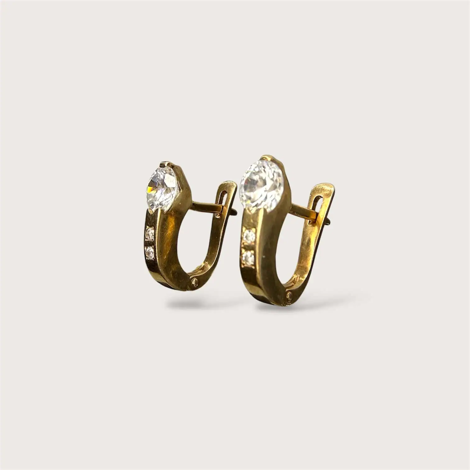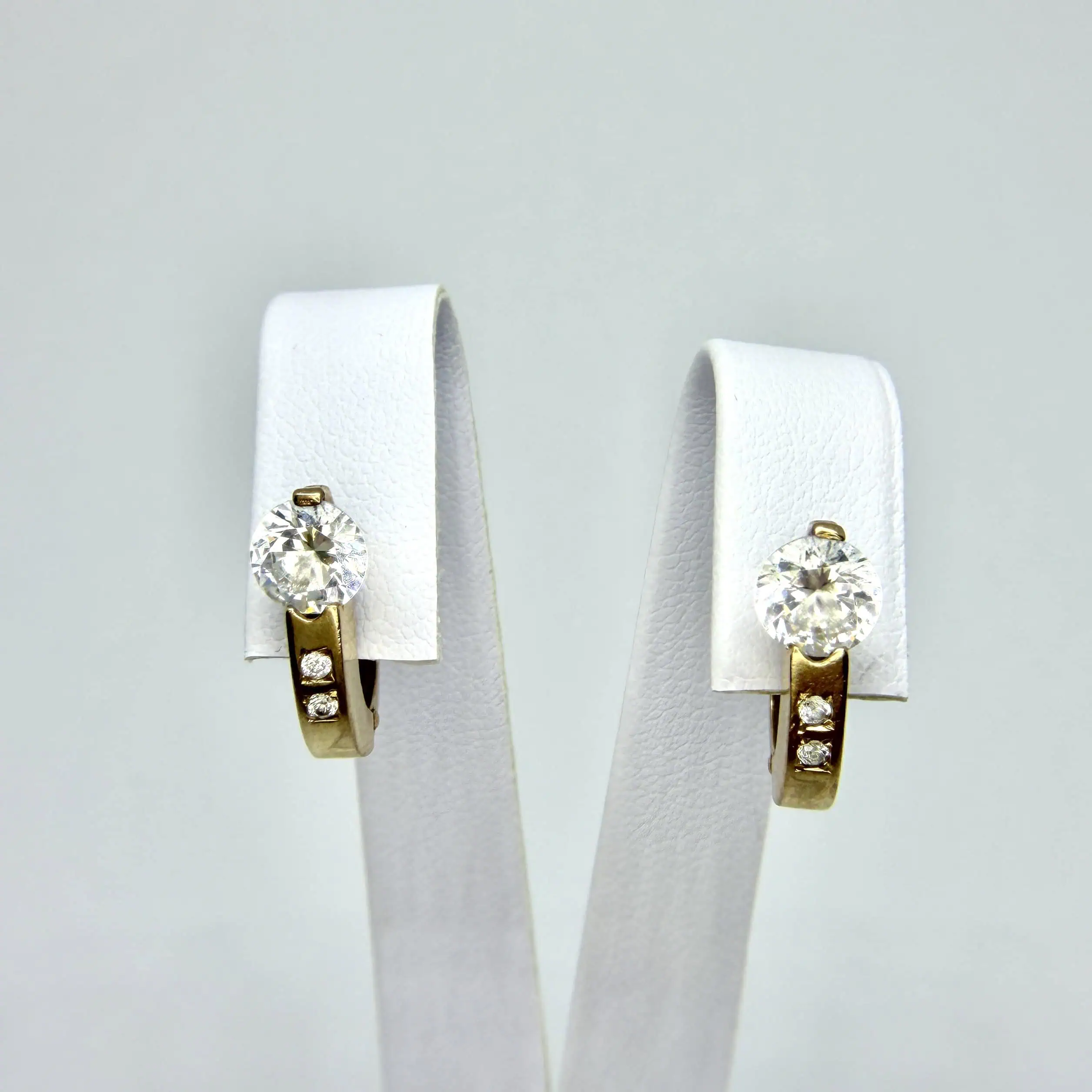 Золоті сережки "Дотик" класичної форми, з яскравими цирконами, що підійдуть на кожен день,