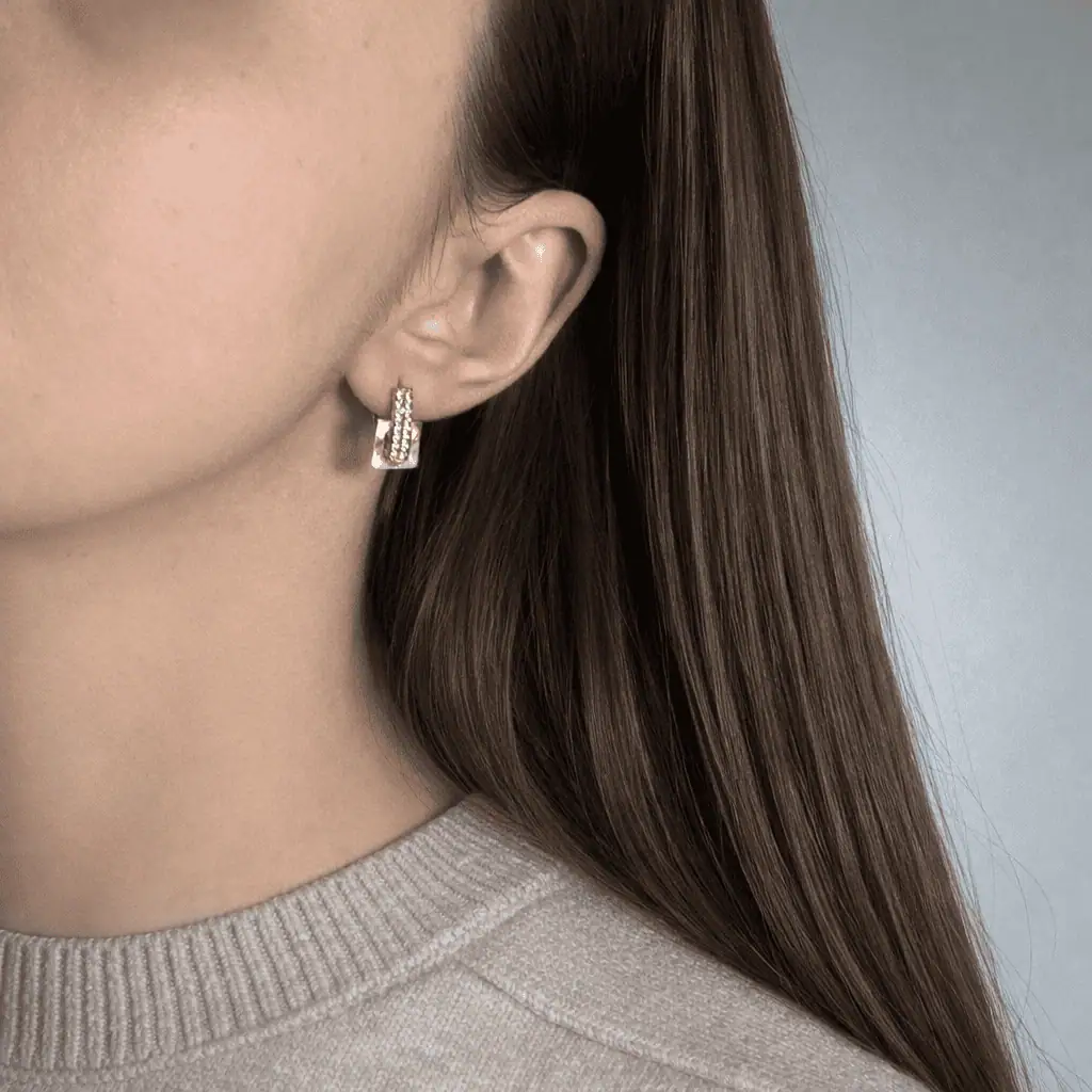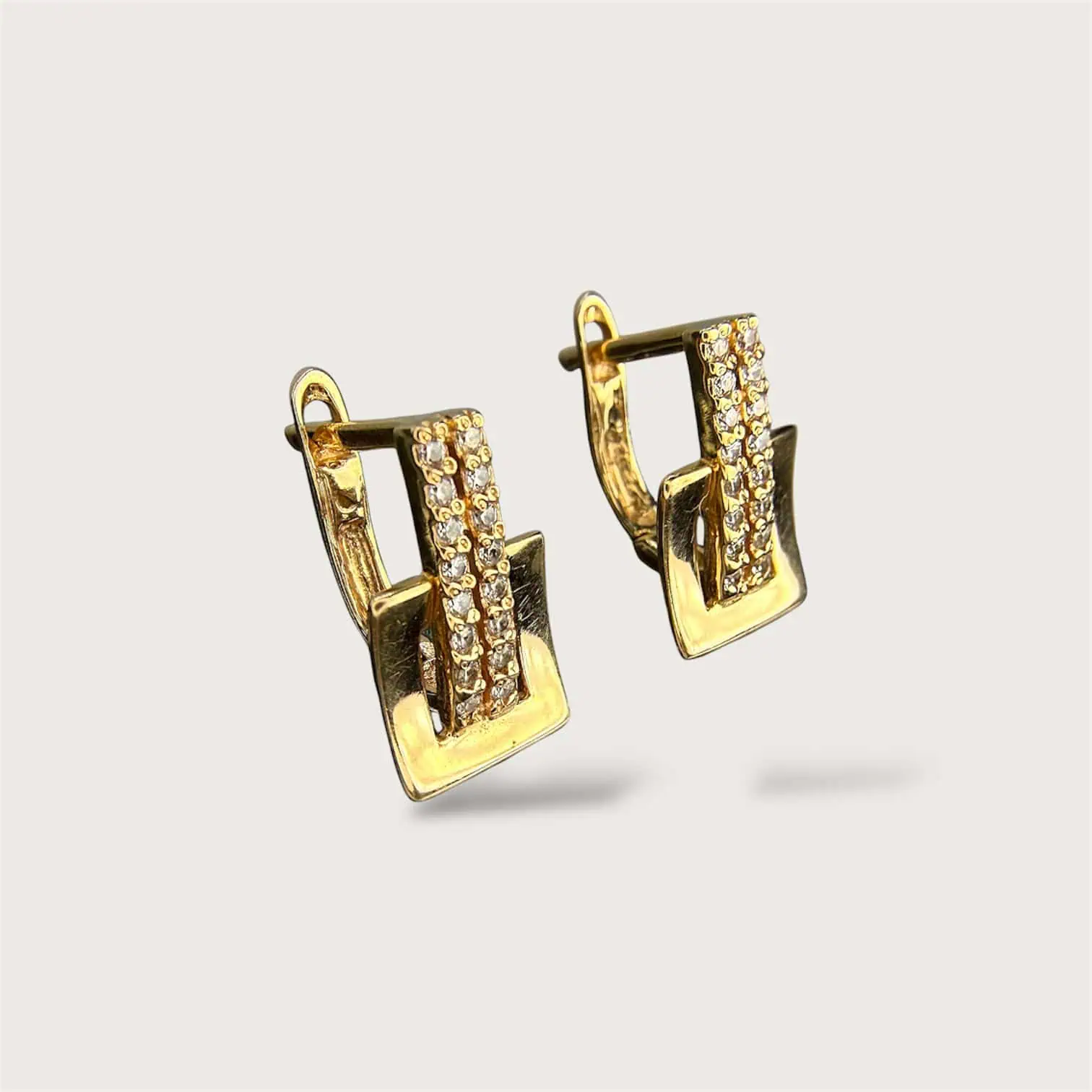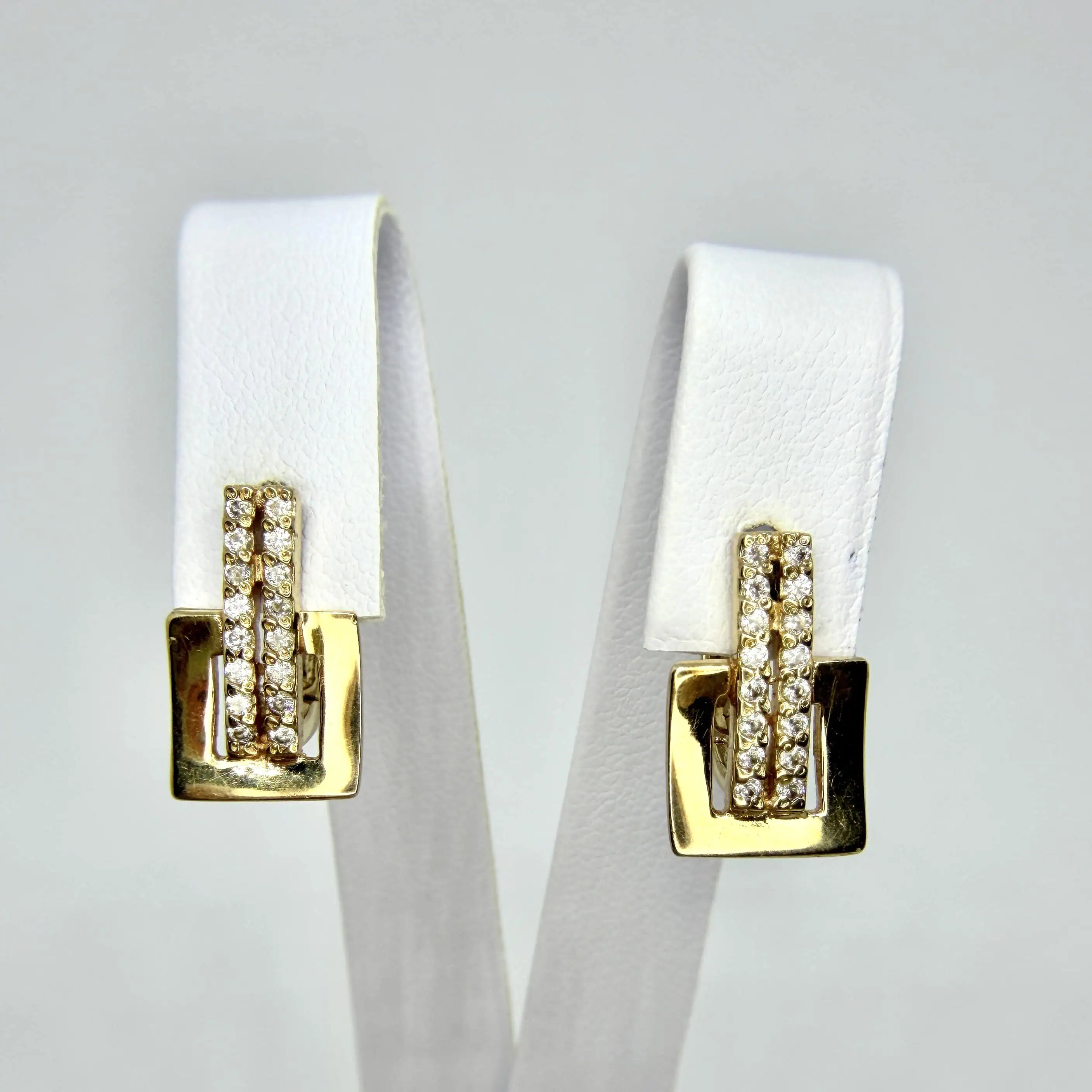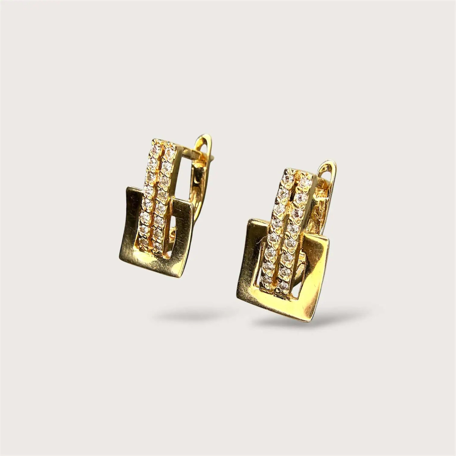 Золоті сережки "Геометрія" - це стильна прикраса, з сяючими цирконами, яка доповнить ваш повсякденний образ
