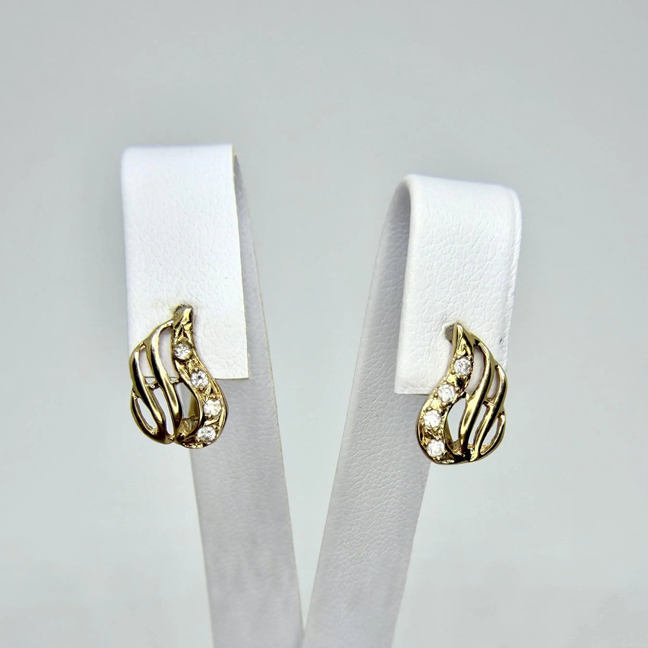 Золоті сережки "Лист" - це ніжні, невеликі сережки, з доріжкою сяючих цирконів.