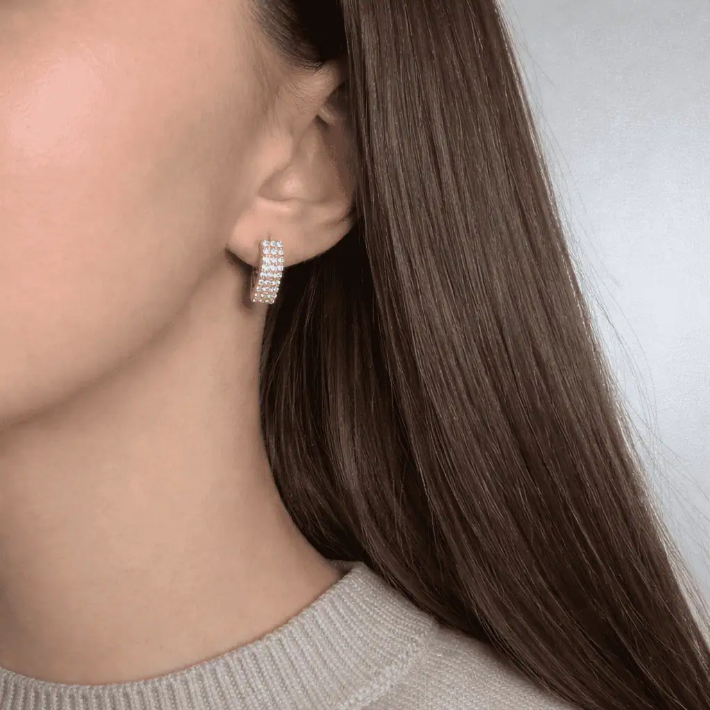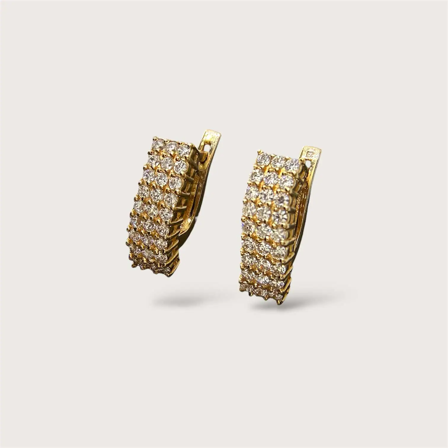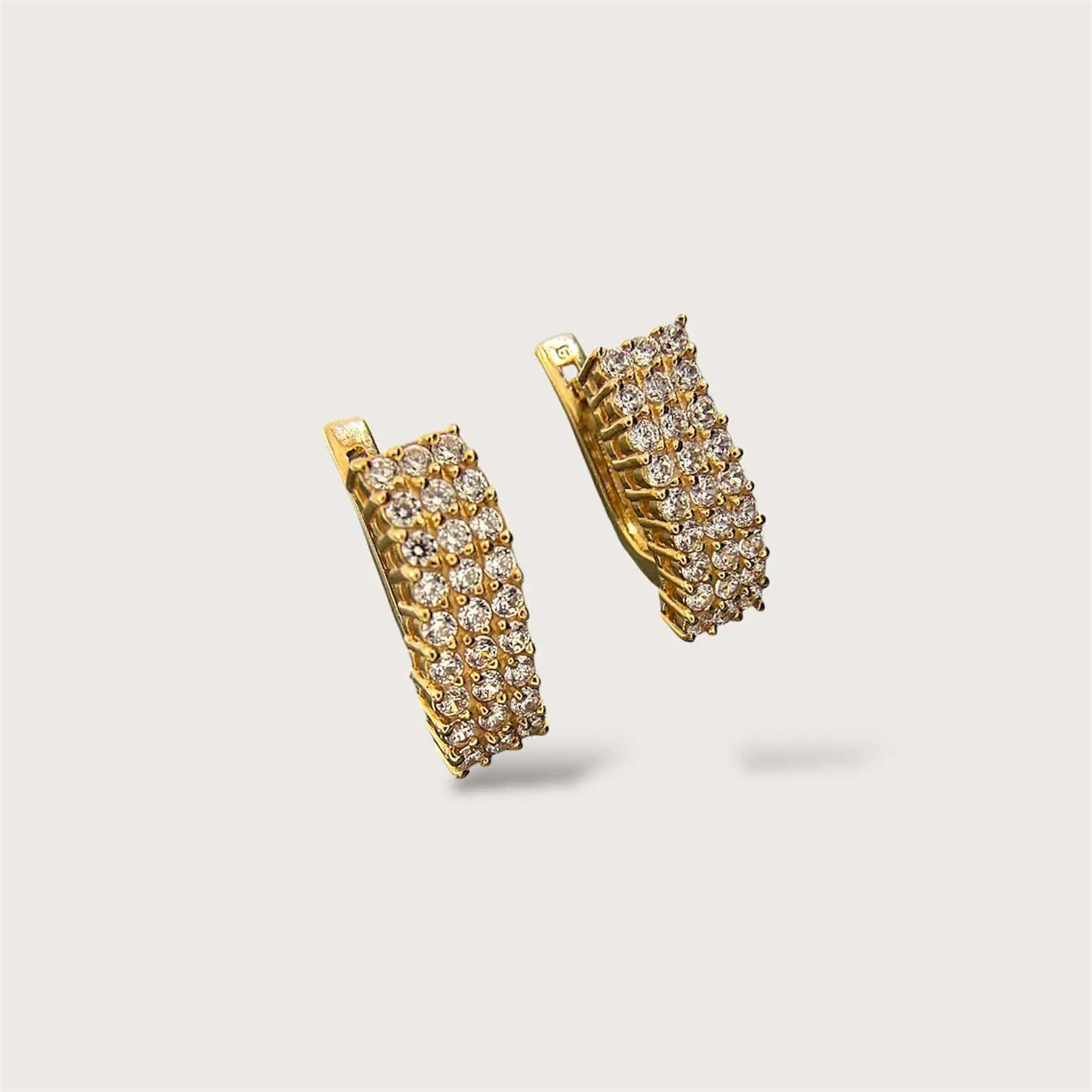 Золоті сережки "Стежка" - це сяючі циркони та класична форма виробу, що завжди буде актуальна.