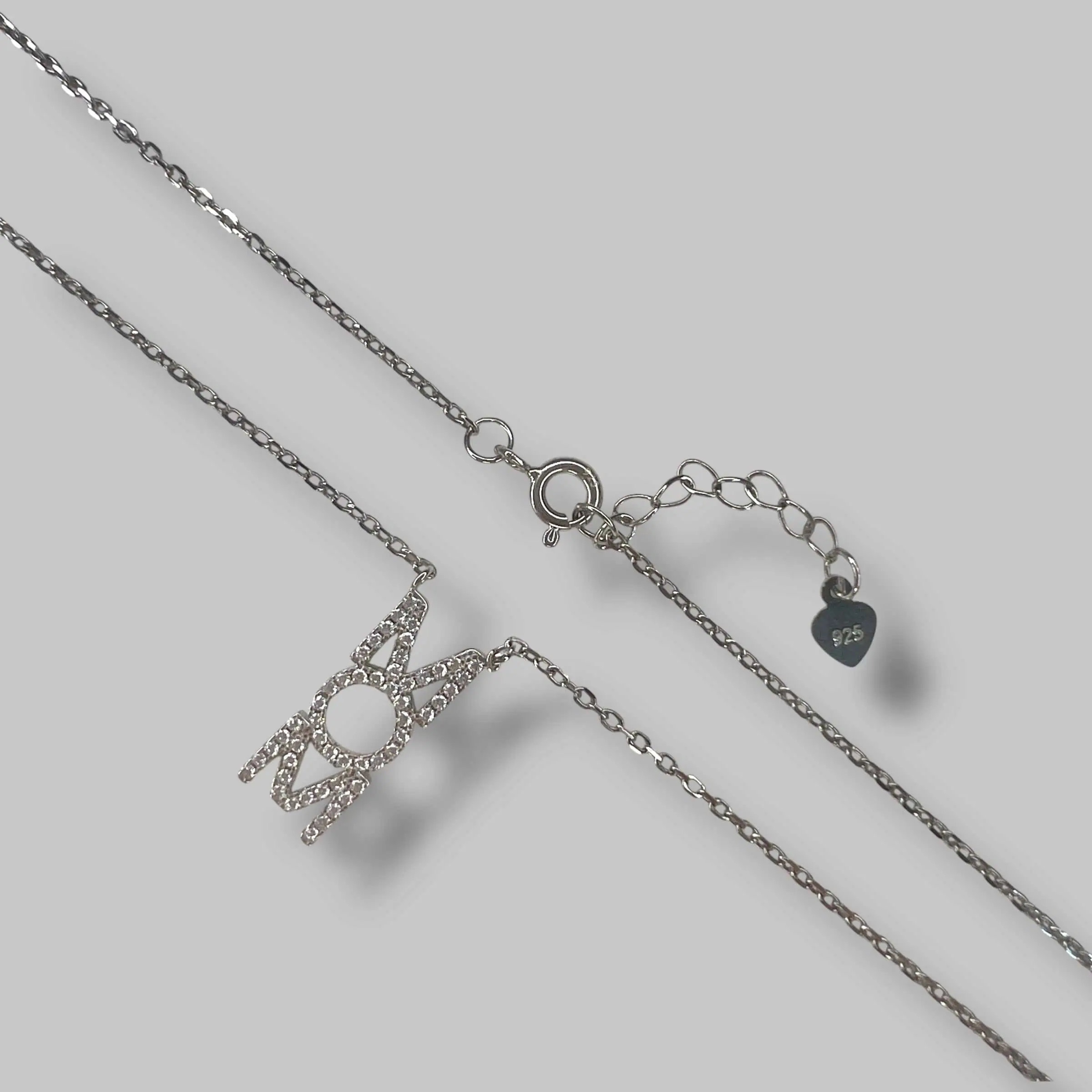 Кожна літера майстерно інкрустована дрібними білими цирконами, що створюють ефект суцільного діамантового сяйва. Особливістю дизайну є центральна літера «O», виконана у формі ідеального кола.