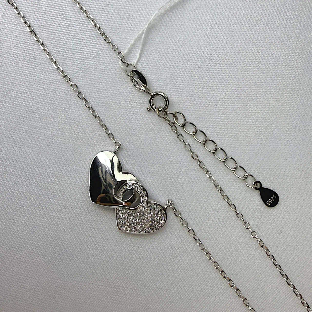 Чуттєве срібне кольє "Два Серця" покрите родієм.