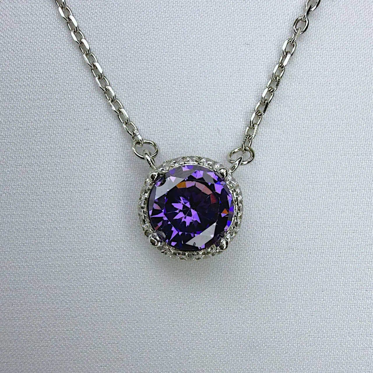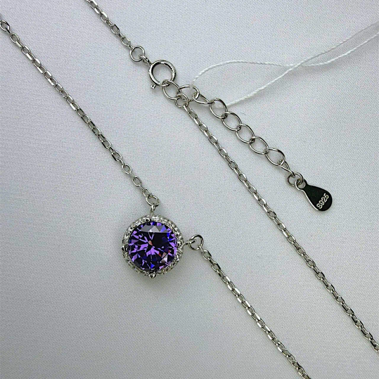 Вишукане срібне кольє "Лавандовий Камінь" покрите родієм.