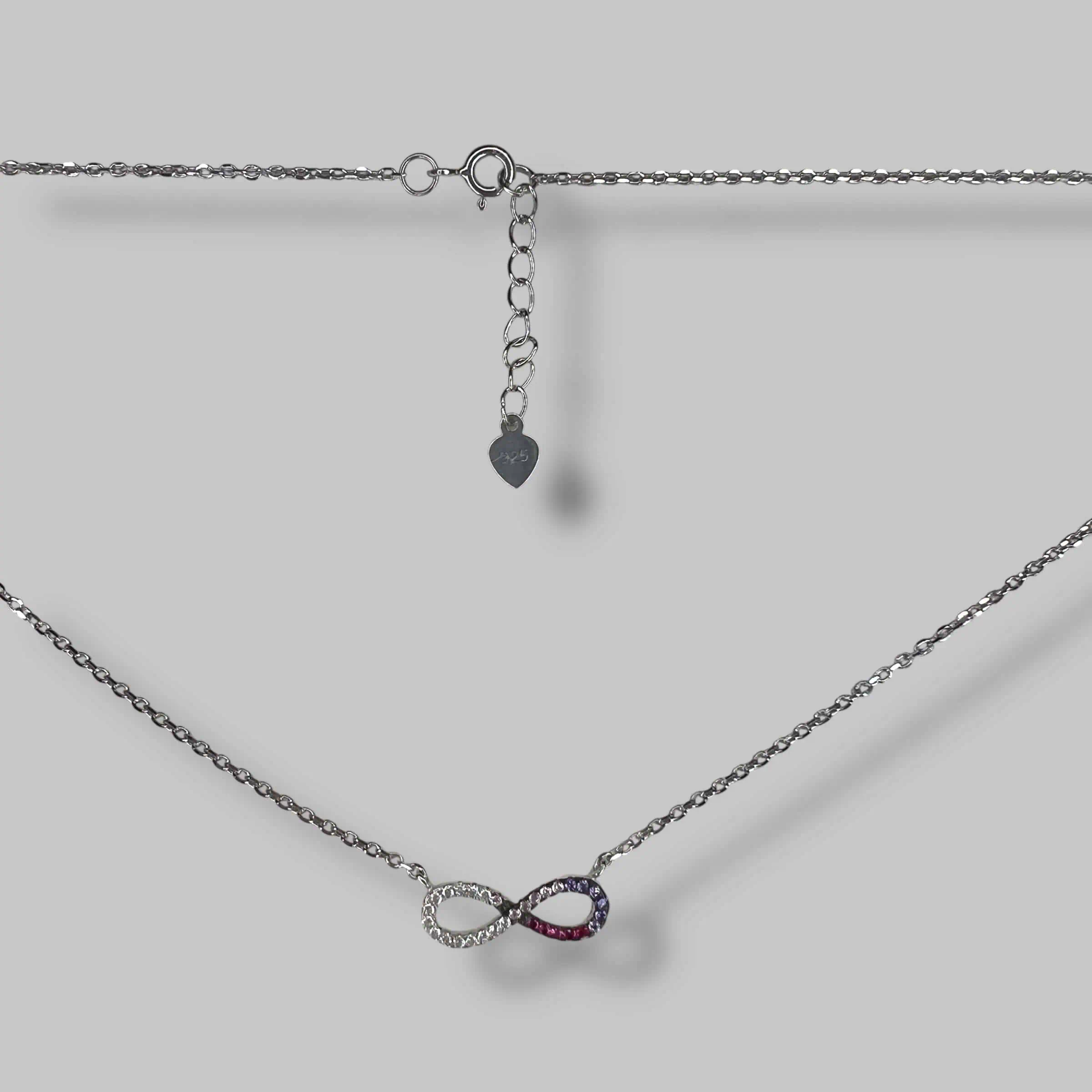 Особливість моделі полягає у плавному переході відтінків цирконів: від класичного прозорого до ніжно-рожевого, насиченого малинового та глибокого бузкового.