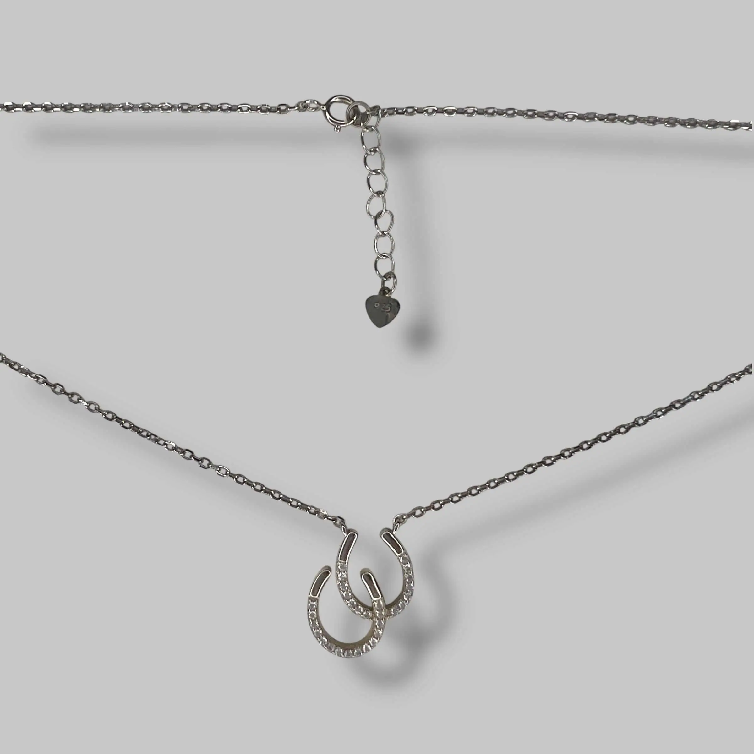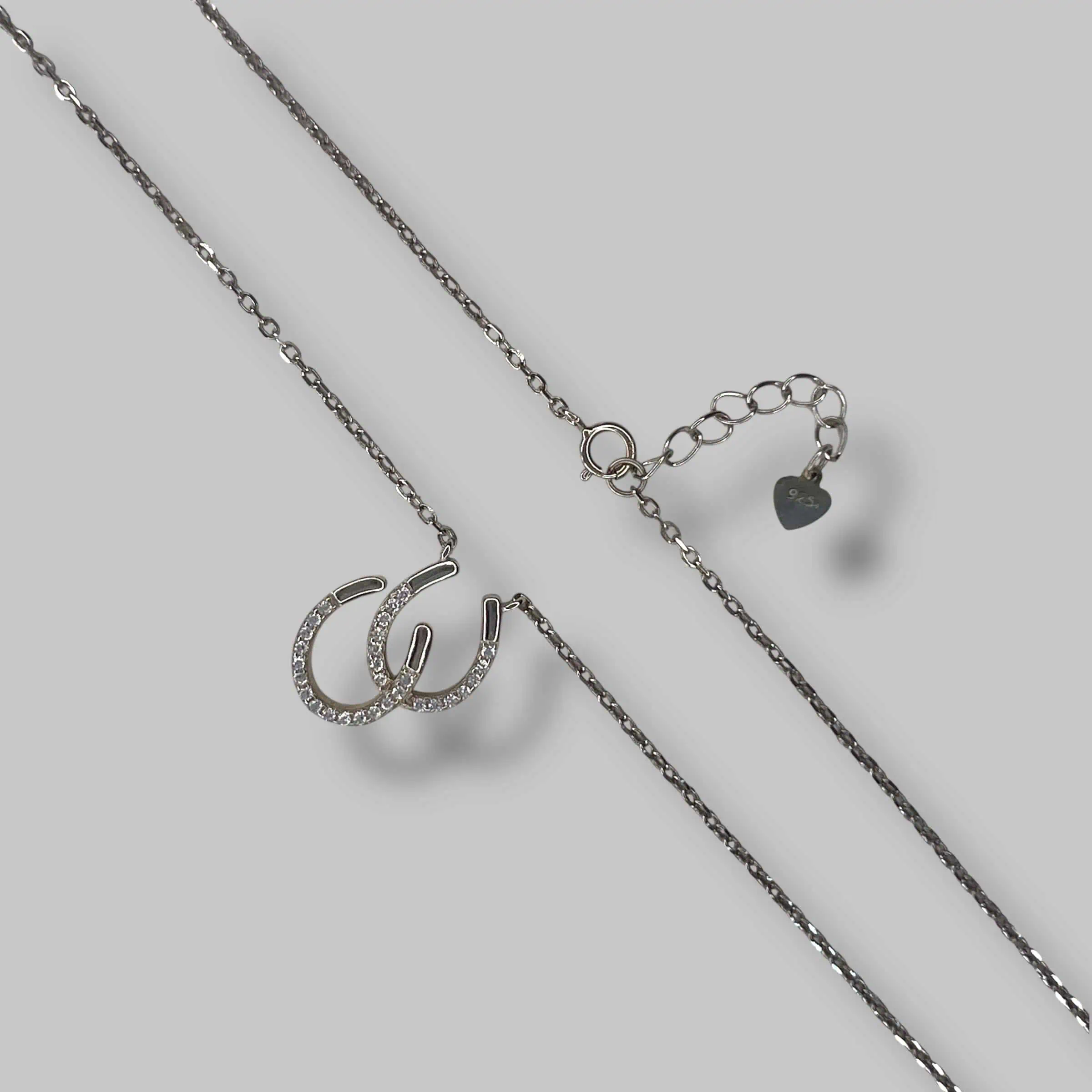 Дизайн поєднує дві підкови, одна з яких вишукано інкрустована доріжкою білих цирконів, а інша має гладку дзеркальну поверхню. Такий контраст текстур створює цікавий візуальний ефект та додає прикрасі сучасного вигляду.