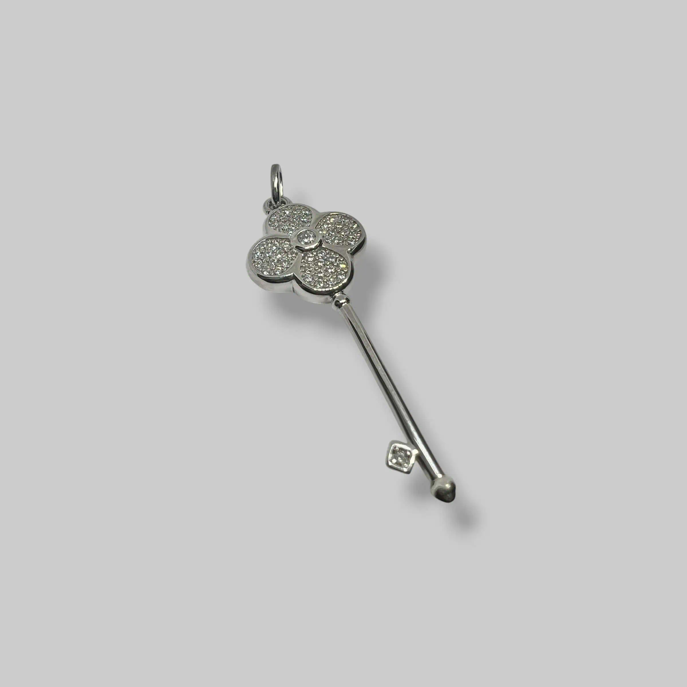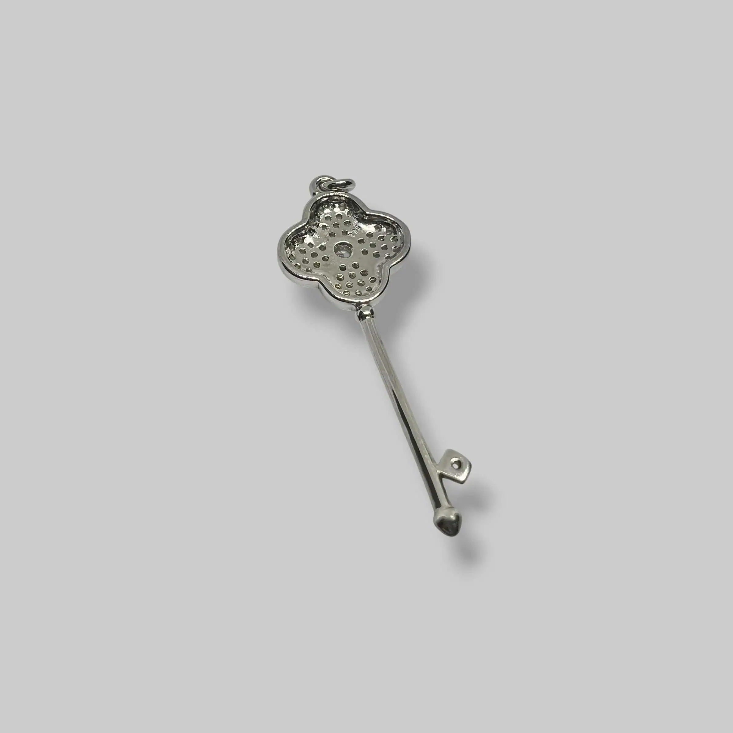 Романтичний дизайн ключа зі срібла з верхівкою у формі квітки. Повна інкрустація білими каменями створює магічний блиск, ідеально доповнюючи ваш елегантний жіночний образ.