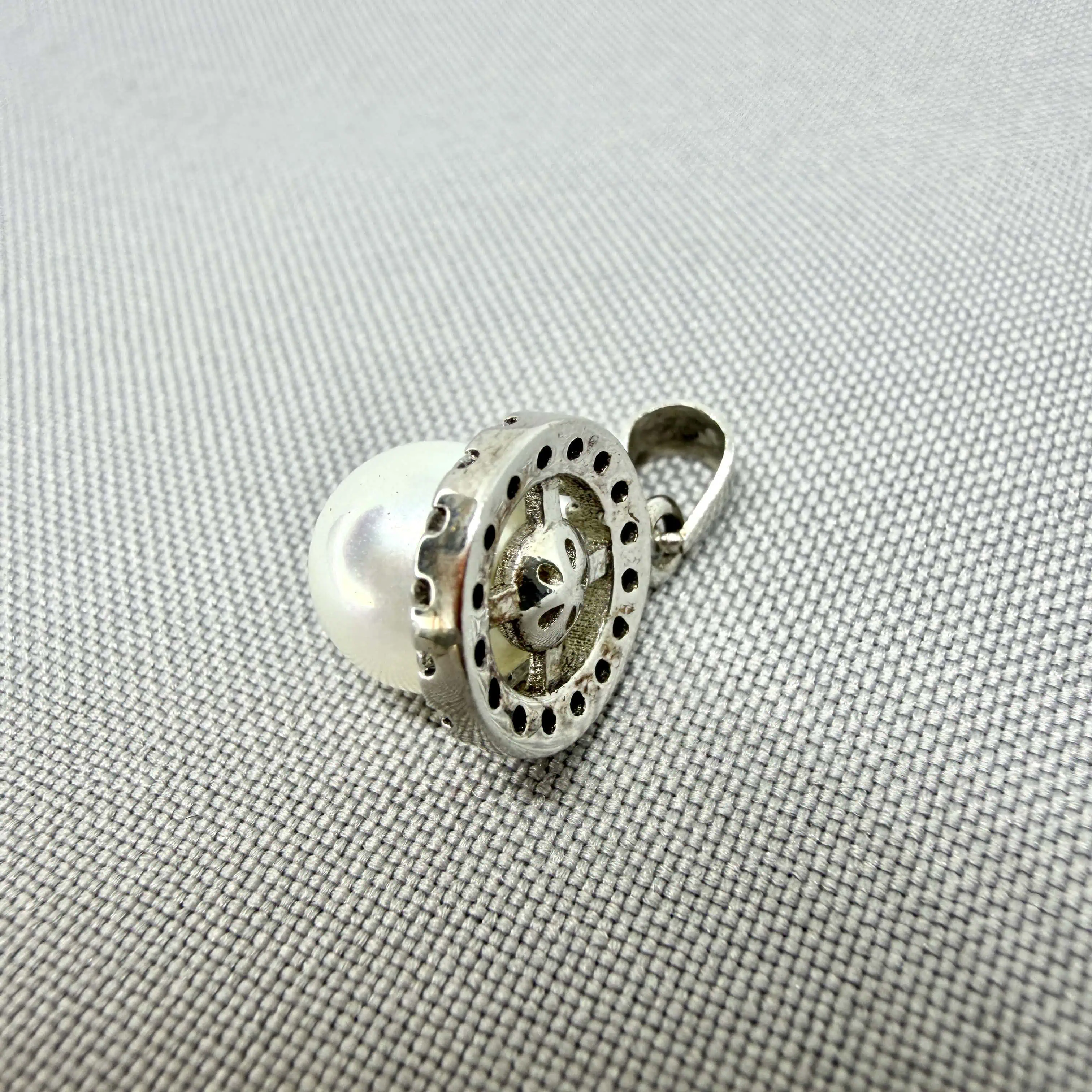 Срібний підвіс "Перлина" - це ніжна прикраса із благородного металу, зі штучною перлиною та сяючими цирконами. Підвіска покрита родієм для блиску і стійкості до зносу.
