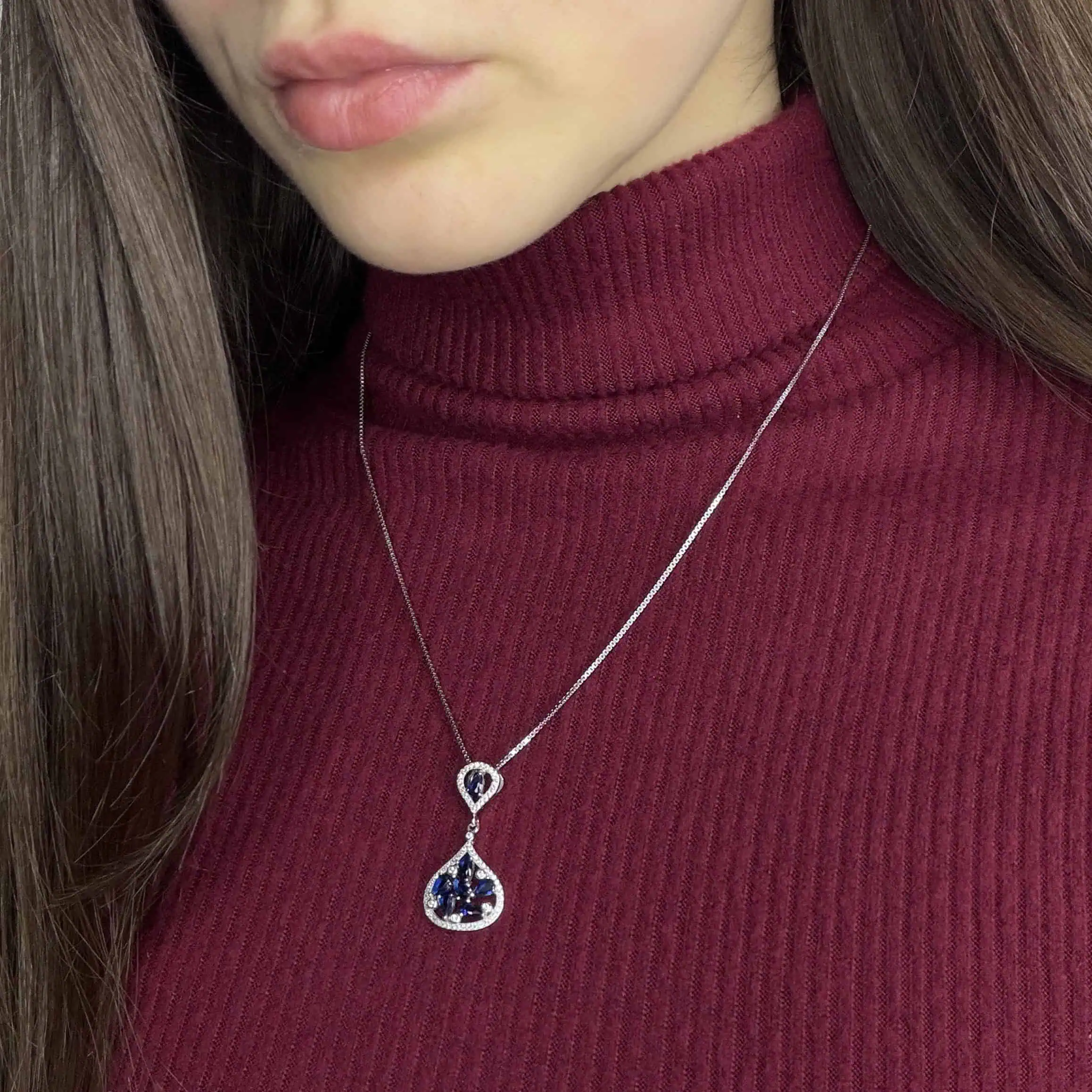 Срібний підвіс "Самоцвіти" - це вишукана та яскрава прикраса із благородного металу, зі штучними сапфірами та цирконами. Підвіска покрита родієм для блиску і стійкості до зносу.