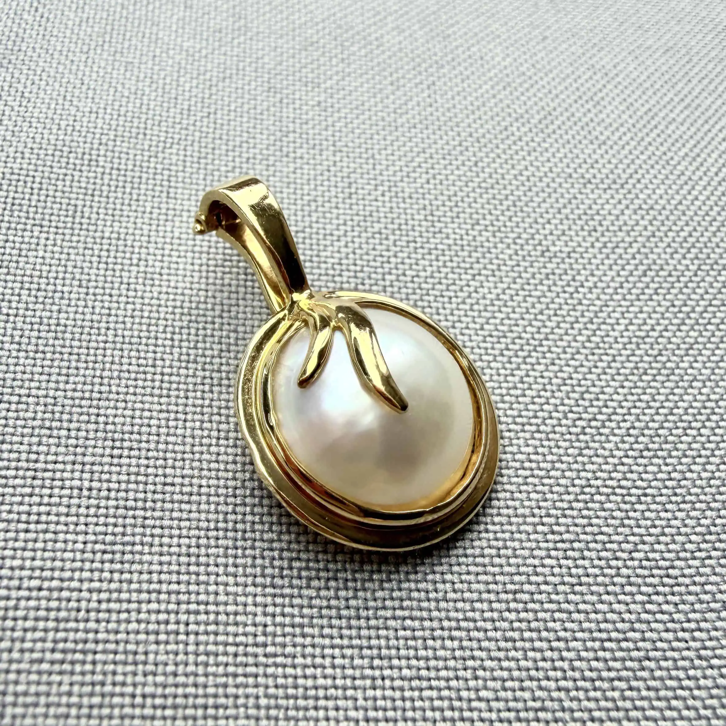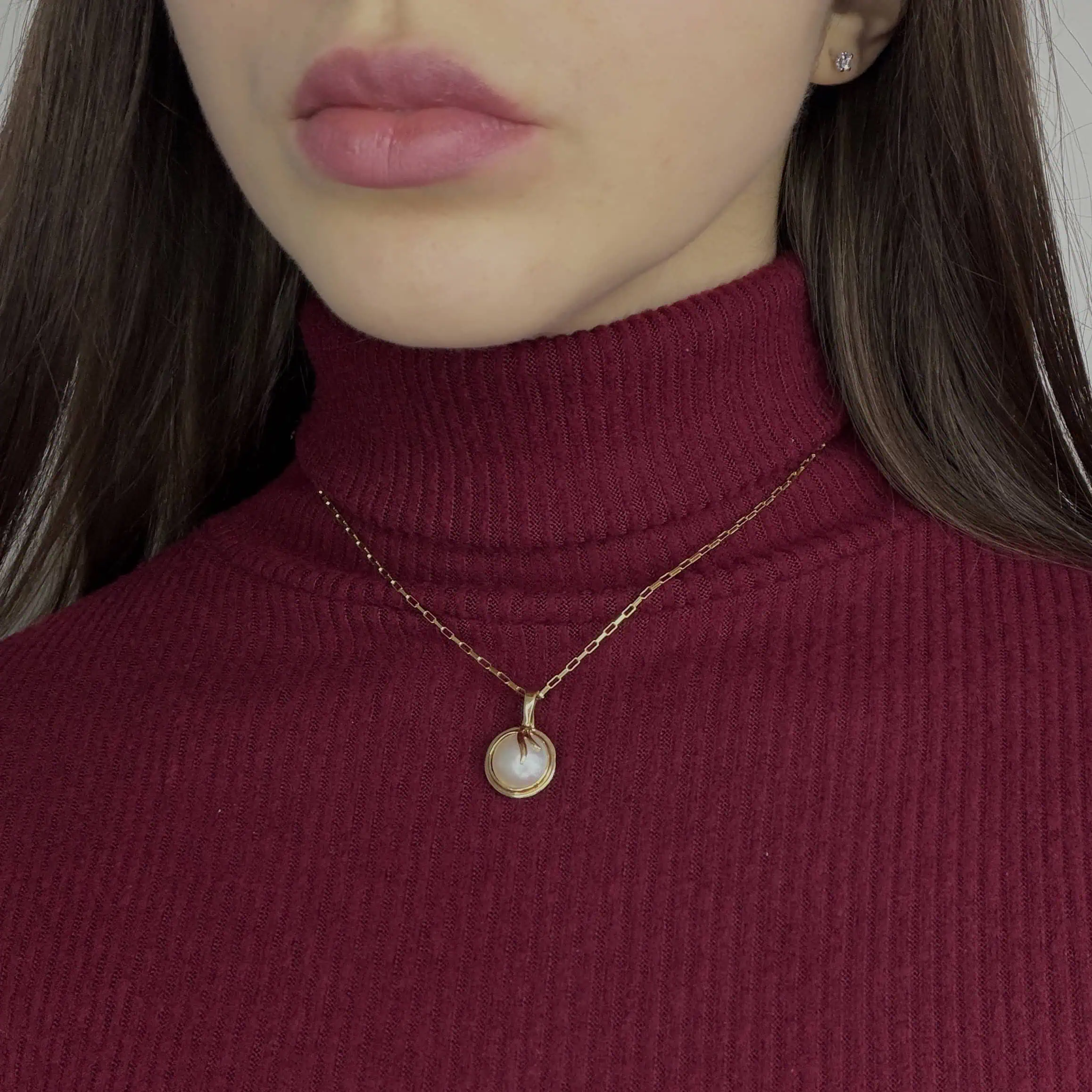 Золотий підвіс "Дарунок Нептуна" - елегантна прикраса, з яскравим, природнім перламутром. Унікальна застібка підвісу створена для того, щоб підійти на будь-який ланцюг.