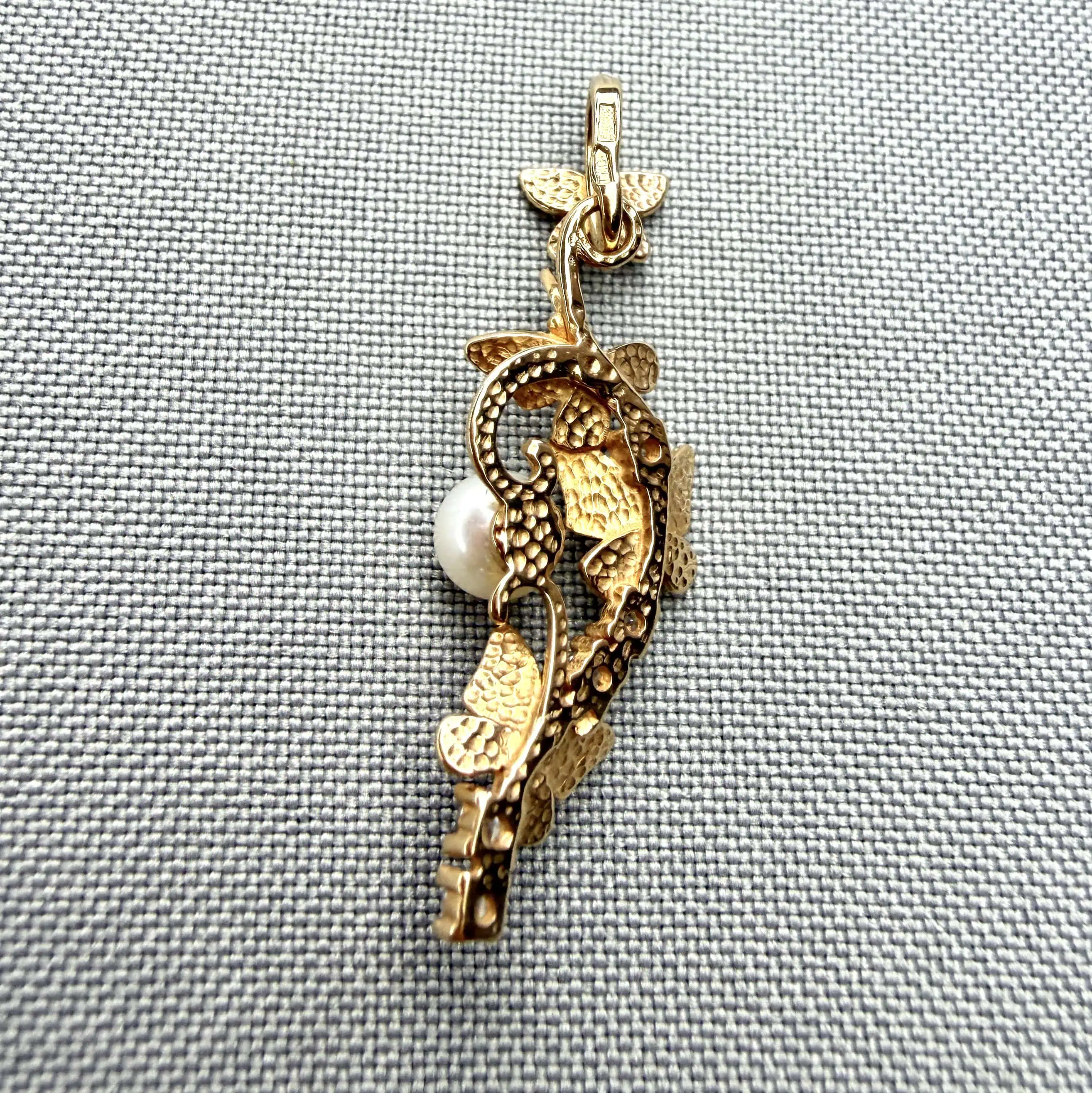 Золотий підвіс "Сад" - це вишукана прикраса ,з яскравими цирконами та натуральною перлиною, і приємним ароматом весни.