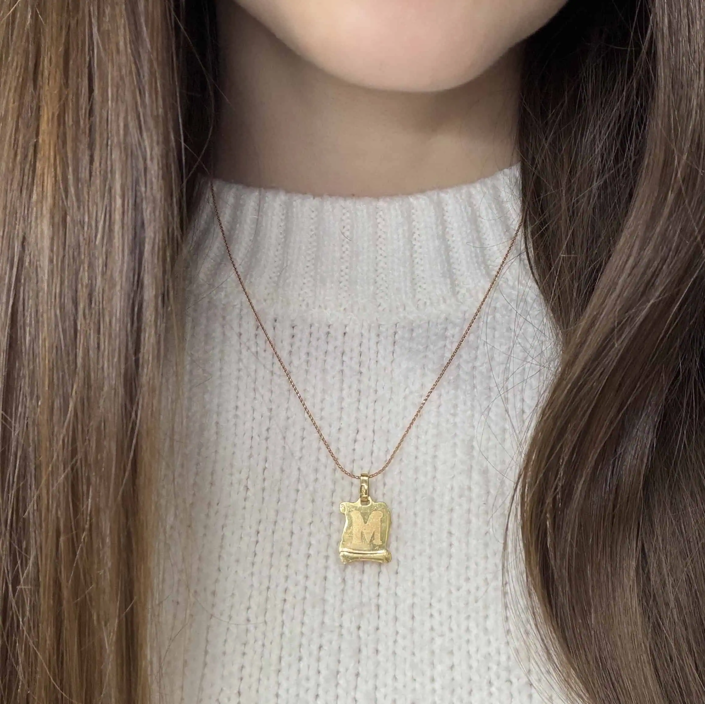 Золотий підвіс "Вишукана буква "М" - це розкішна прикраса, яка підкреслить вашу індивідуальність.