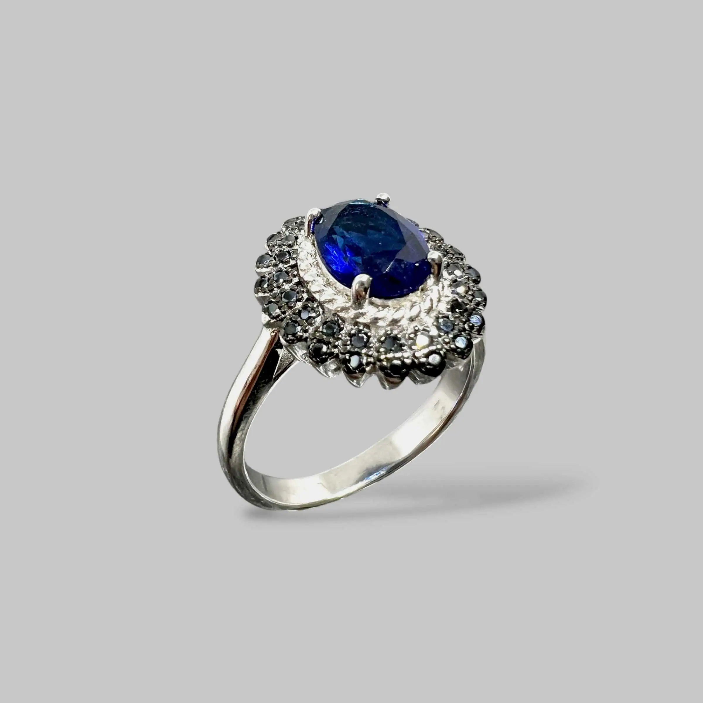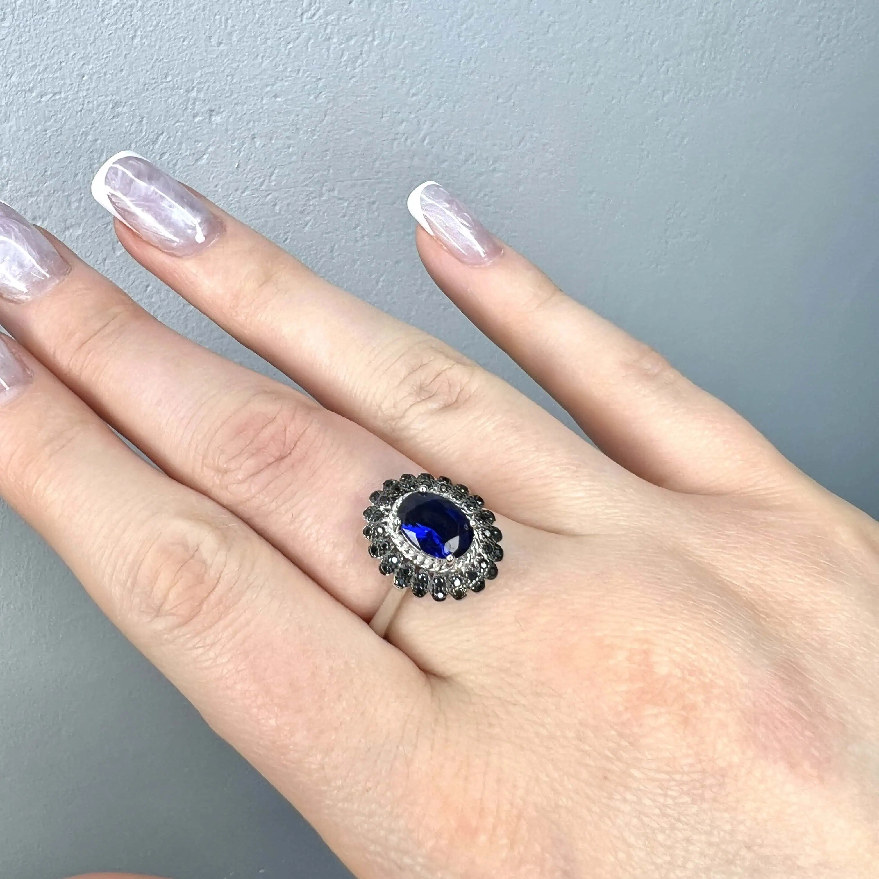Елегантна срібна каблучка в популярному дизайні з конюшиною, прикрашеною вставкою з чорного ювелірного матеріалу з перламутровим відливом. Тонке обрамлення з прозорих кристалів додає виробу ніжного мерехтіння та завершеності.