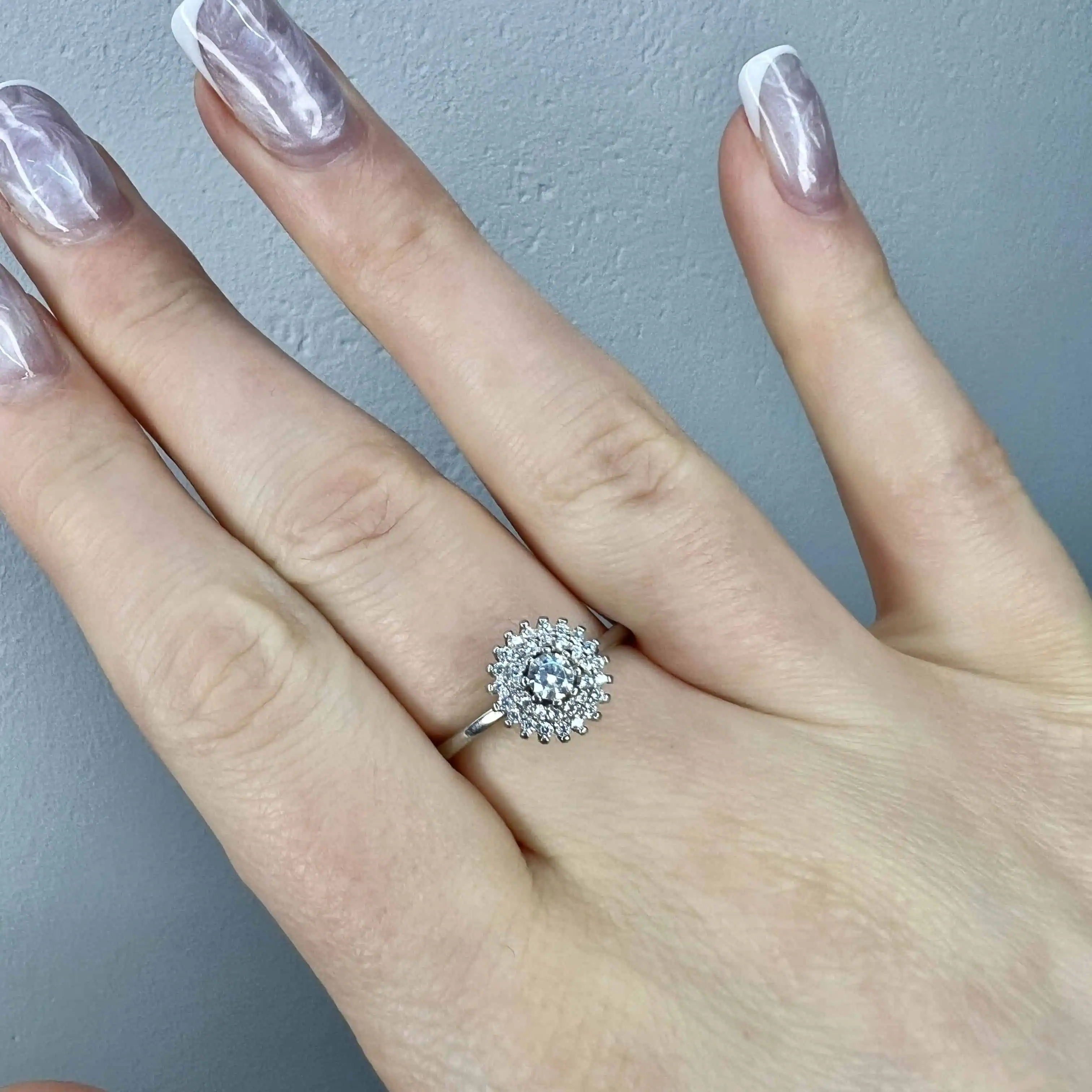 Срібна каблучка "Діамантова квітка"