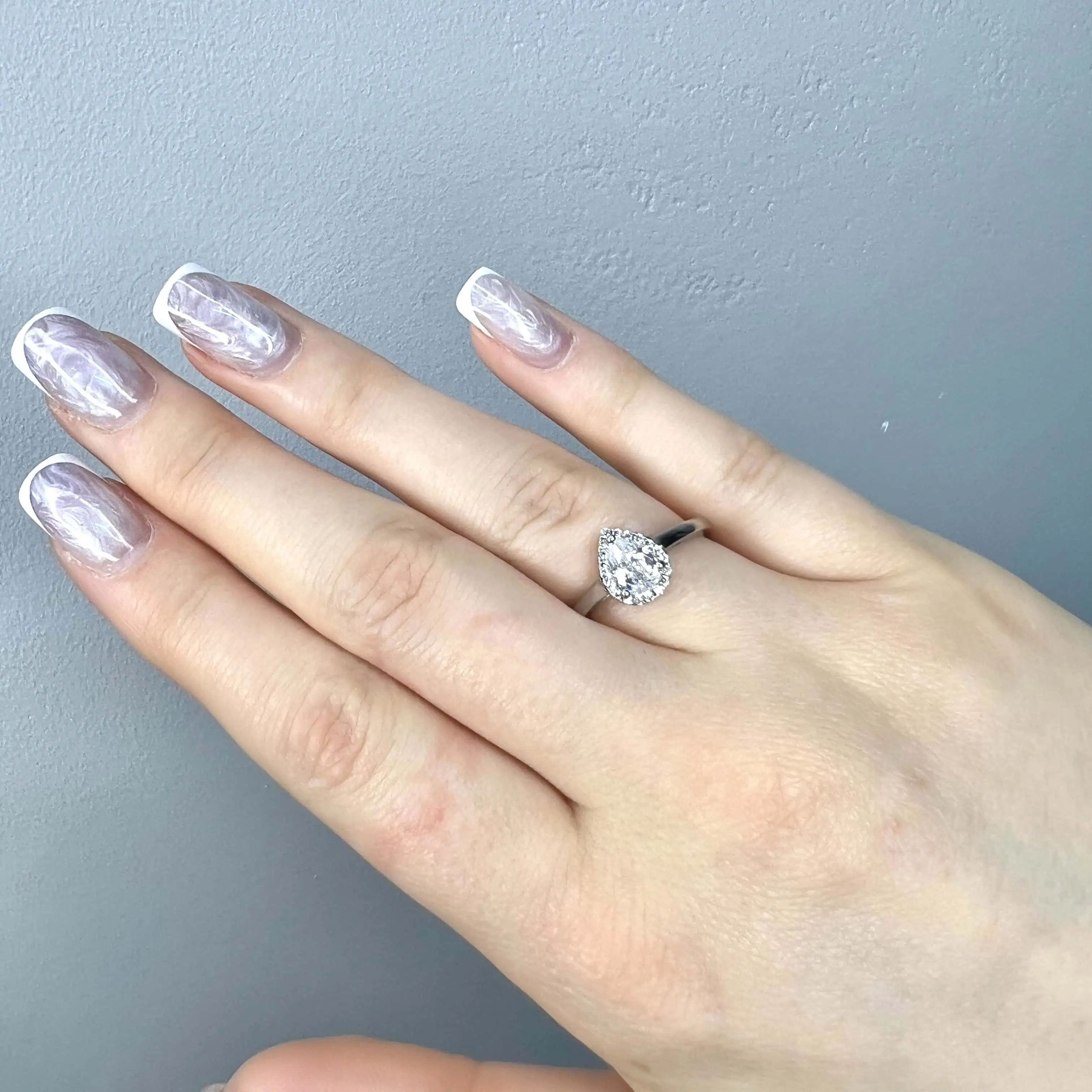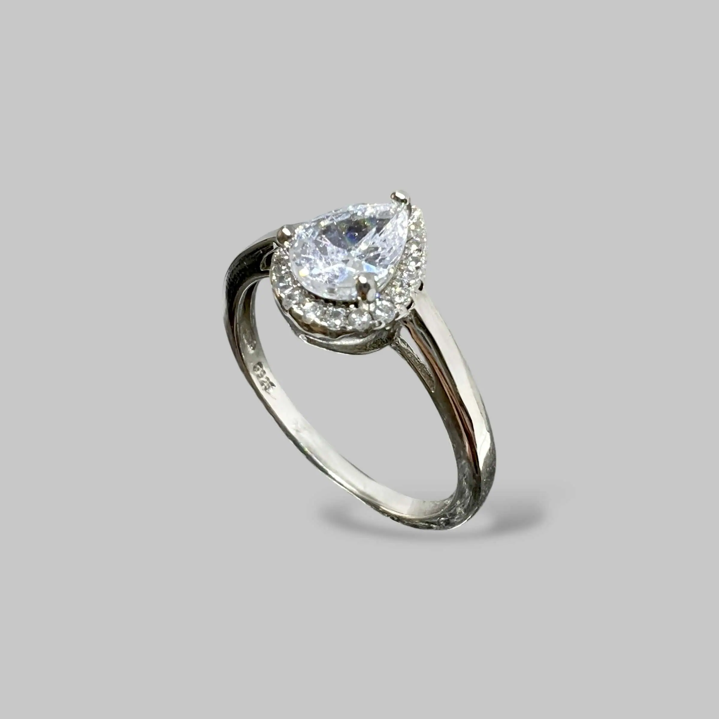 Вишукана срібна каблучка з великим круглим каменем насиченого смарагдового кольору в центрі. Подвійне обрамлення з сяючих білих цирконів створює ефектний об'єм та підкреслює шляхетну глибину центрального самоцвіту.