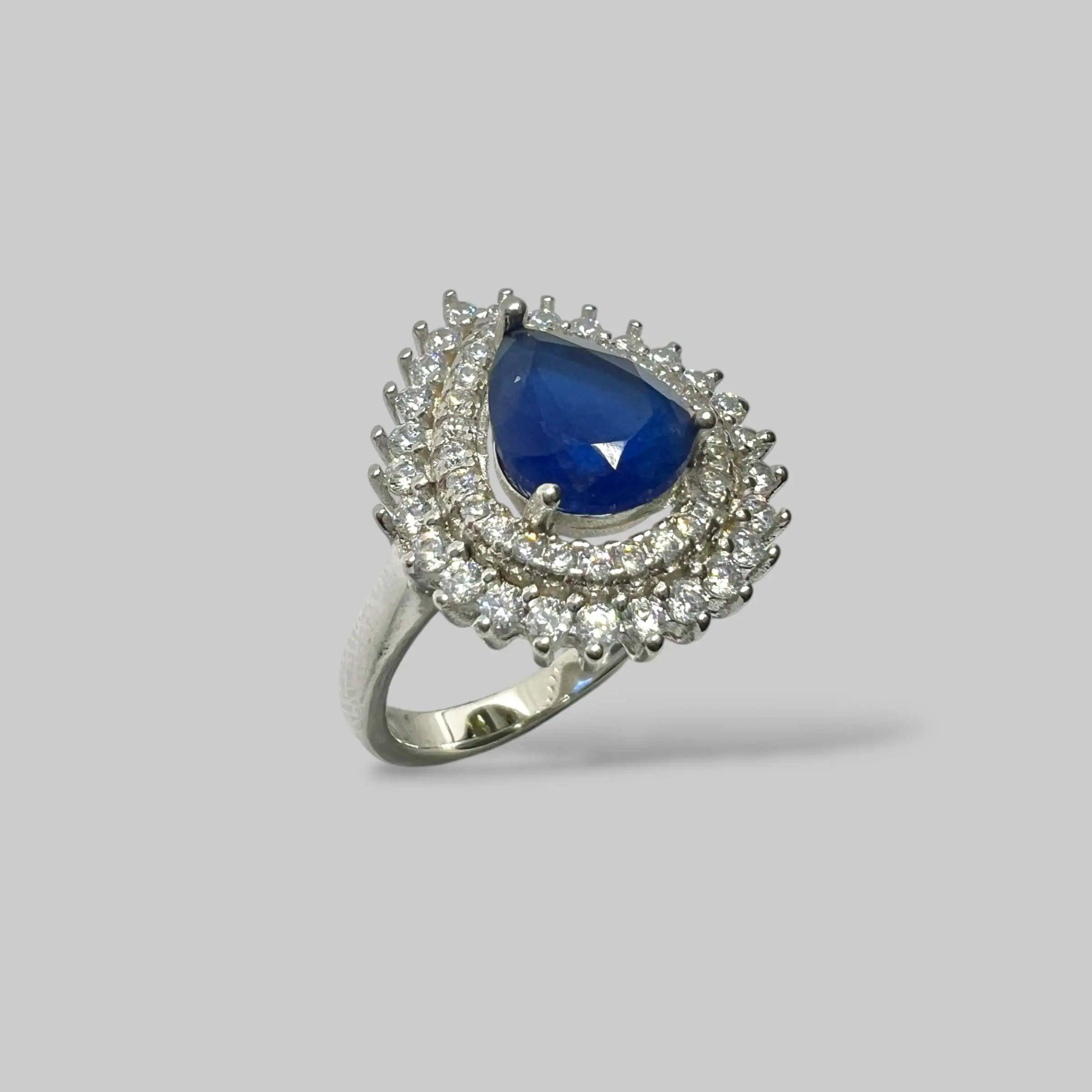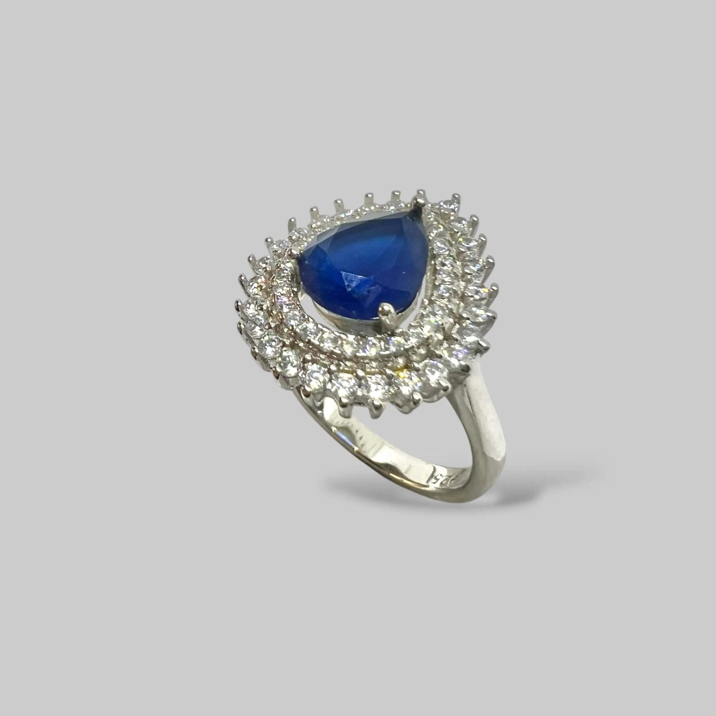 Неймовірне поєднання холодного блиску срібла 925 проби та глибокого синього циркону. Форма краплі на пальці виглядає надзвичайно витончено, візуально додаючи рукам стрункості та грації.
