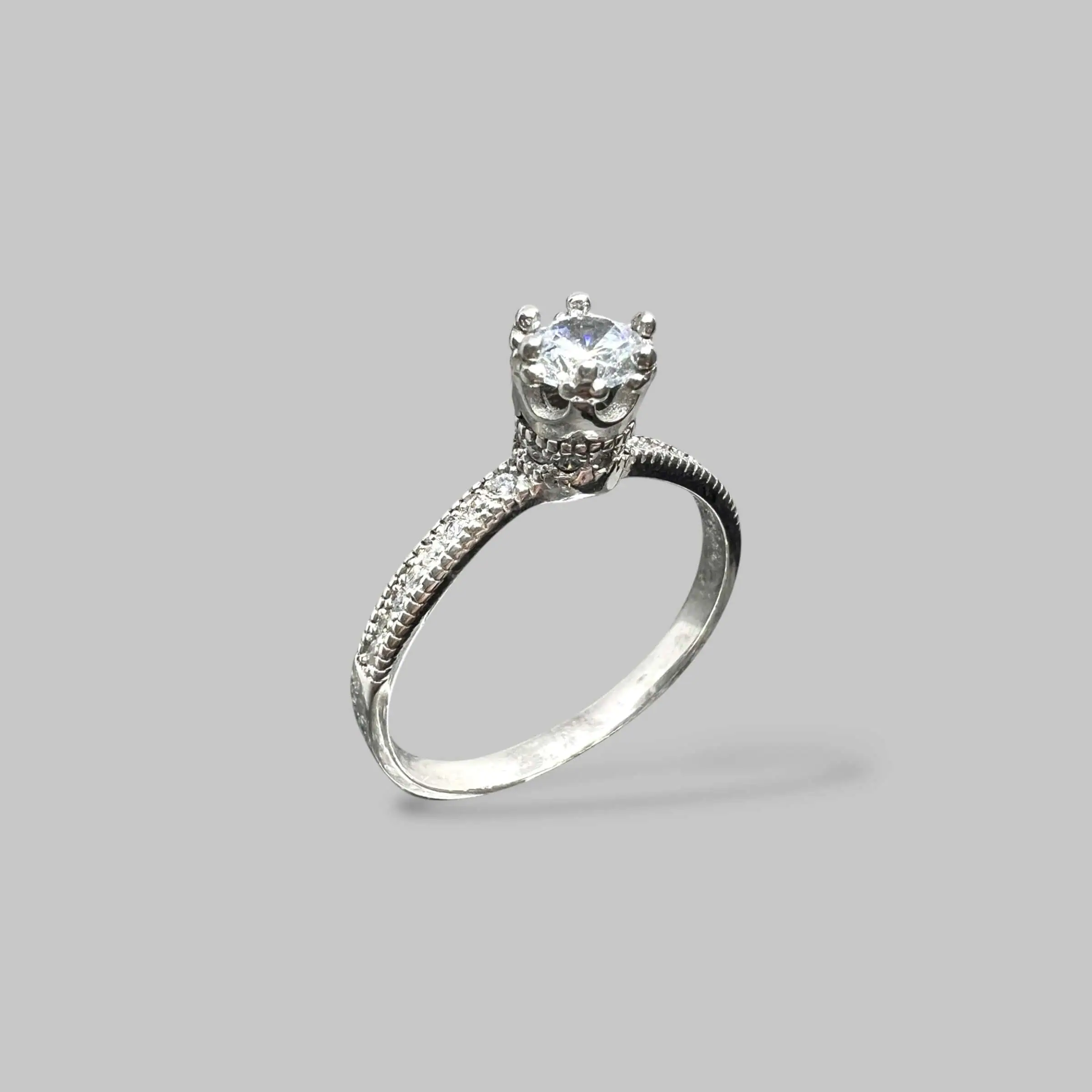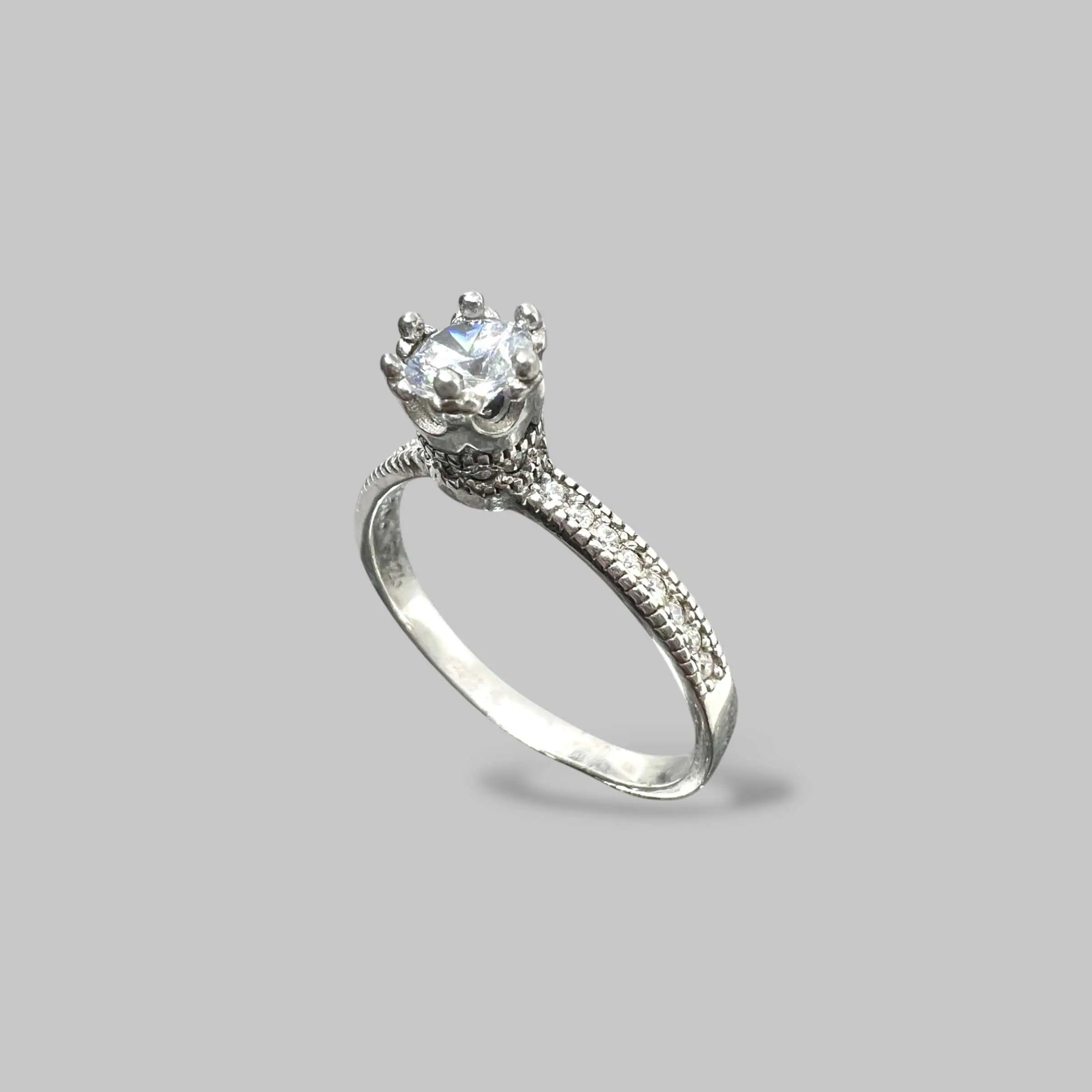 Ефектна срібна каблучка з деталізованим символом черепа, що тримає великий циркон у формі корони. Шинка виробу оздоблена дрібними каменями, створюючи сміливий та водночас розкішний образ для поціновувачів готичного стилю.