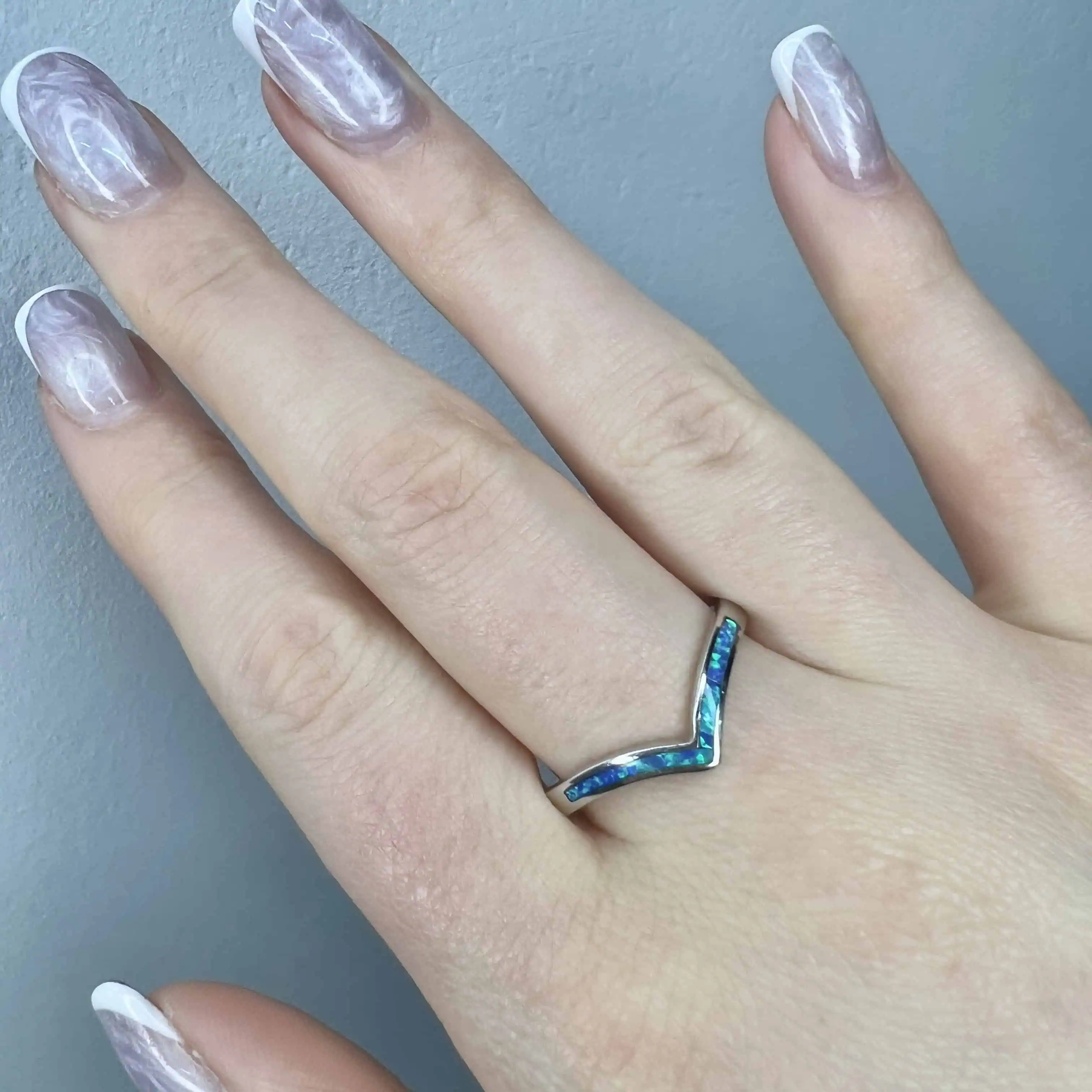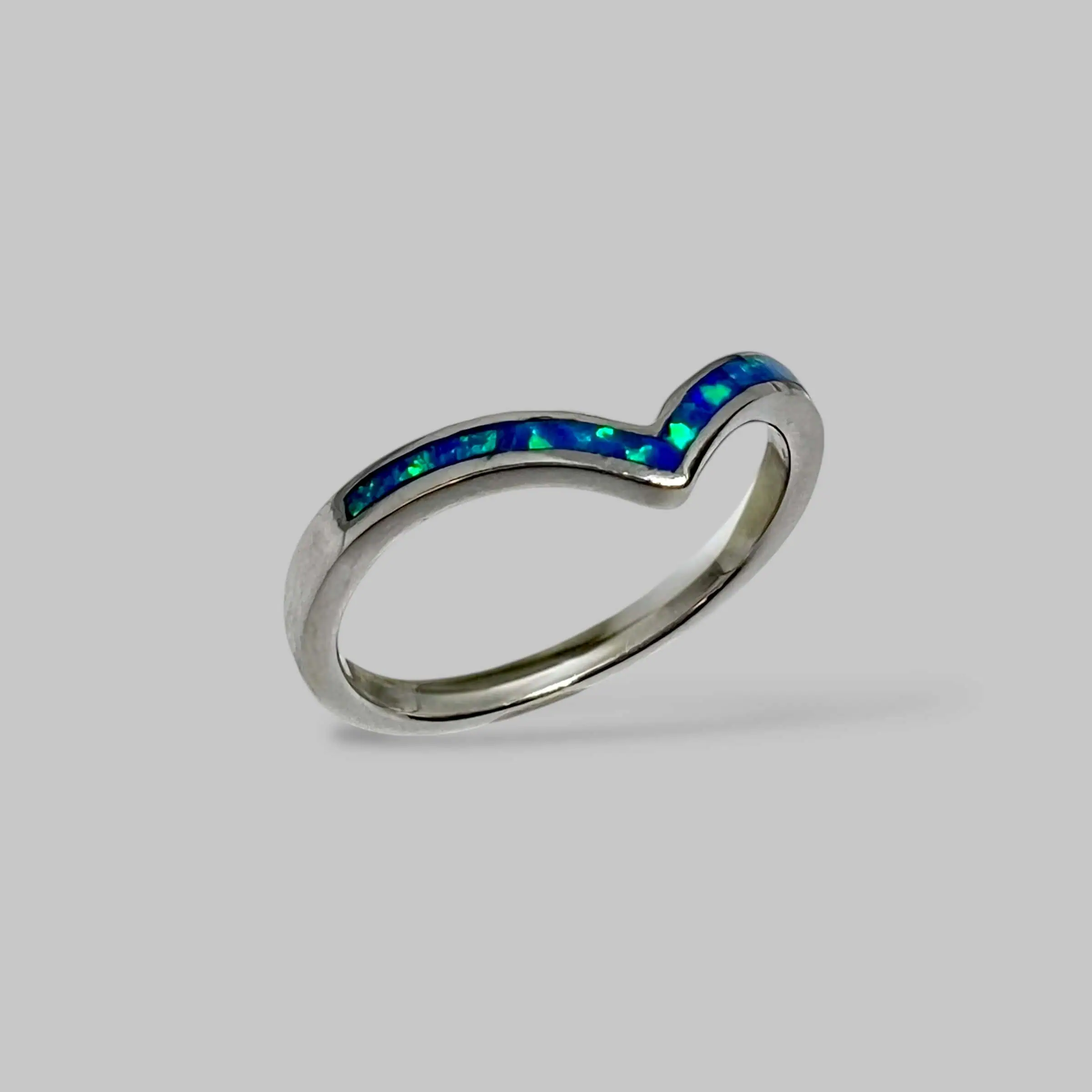Витончена срібна каблука-доріжка, прикрашена рівномірним рядом прямокутних вставок зі штучного опалу. Мінімалістичний дизайн та насичений небесно-блакитний відтінок роблять її універсальним аксесуаром, що легко поєднується з іншими прикрасами.