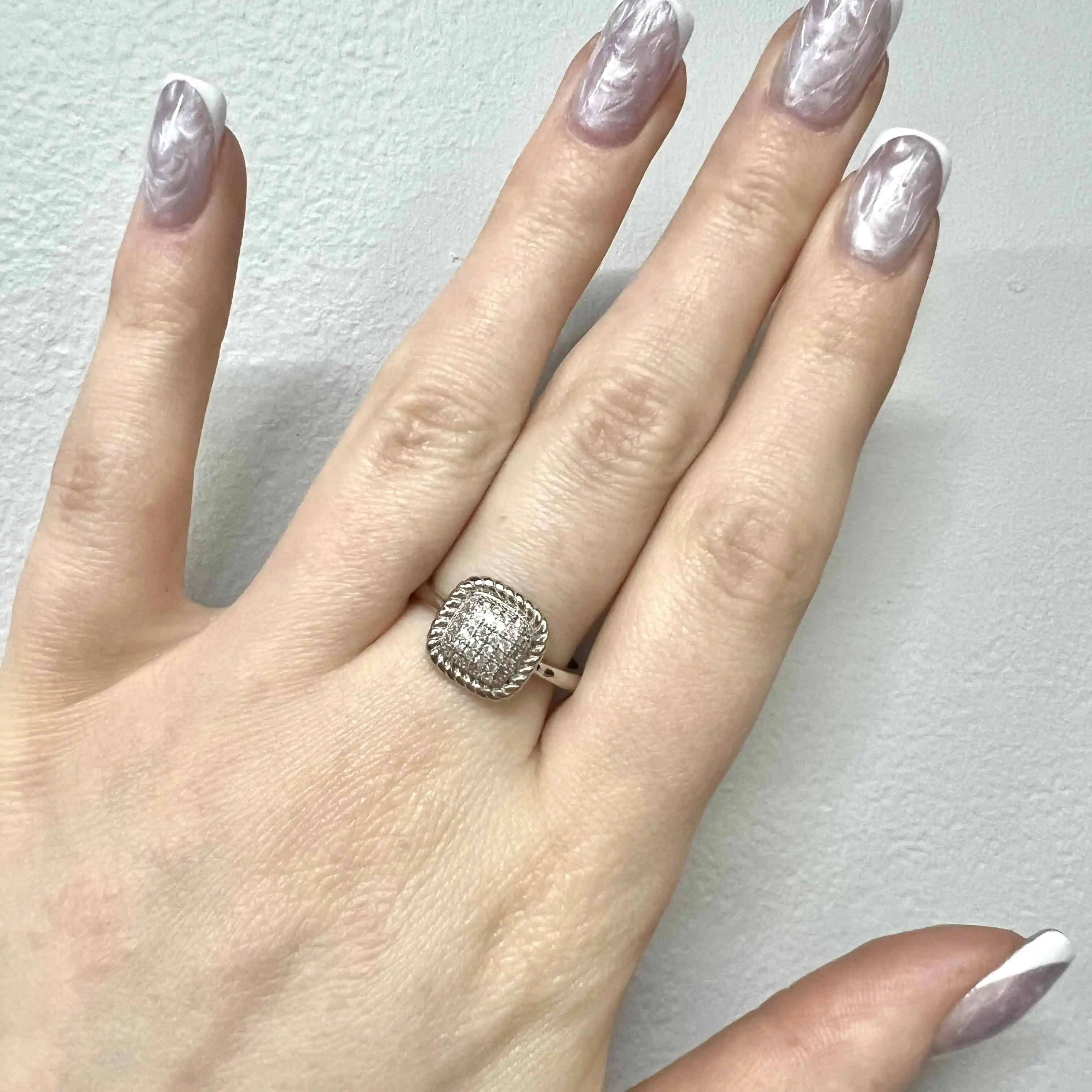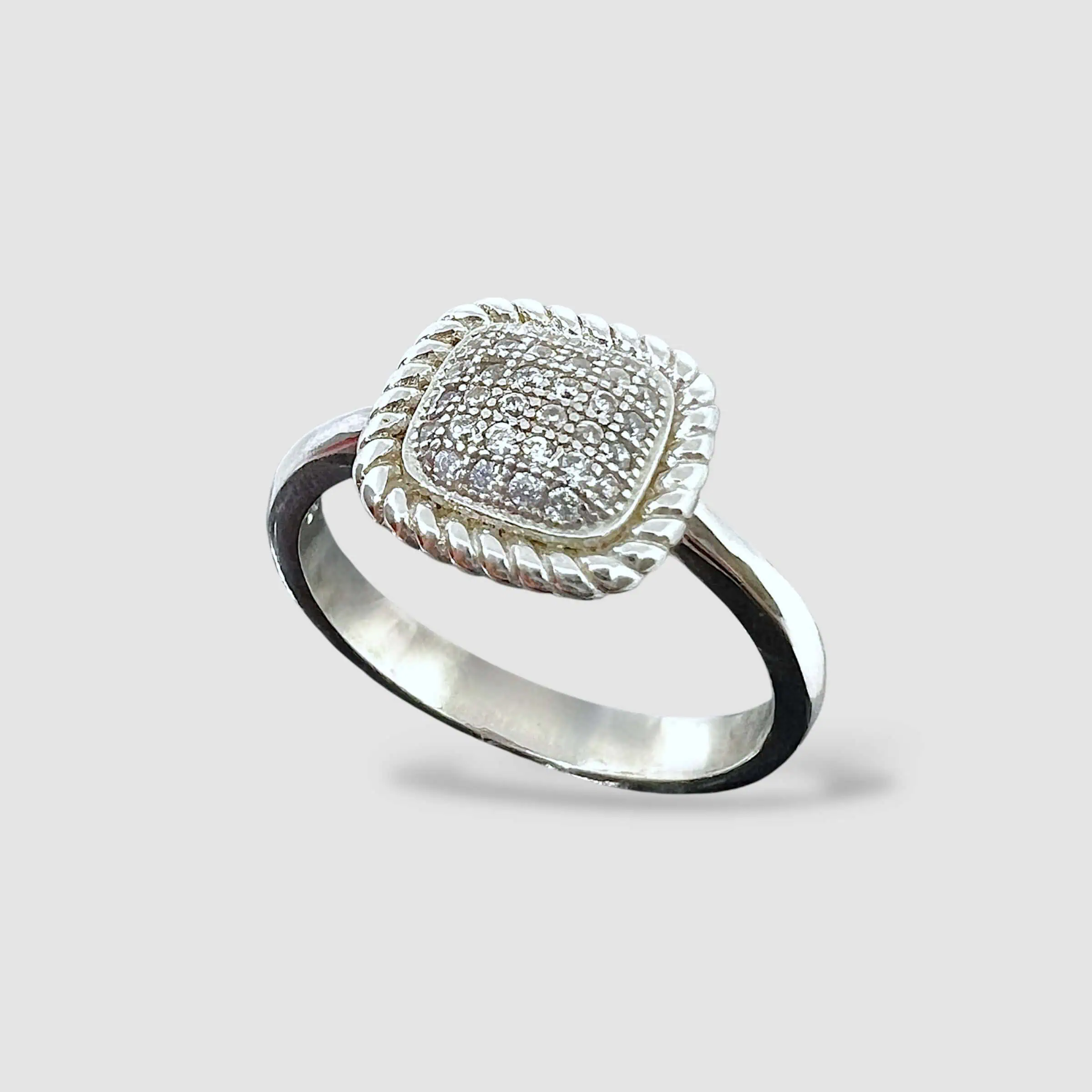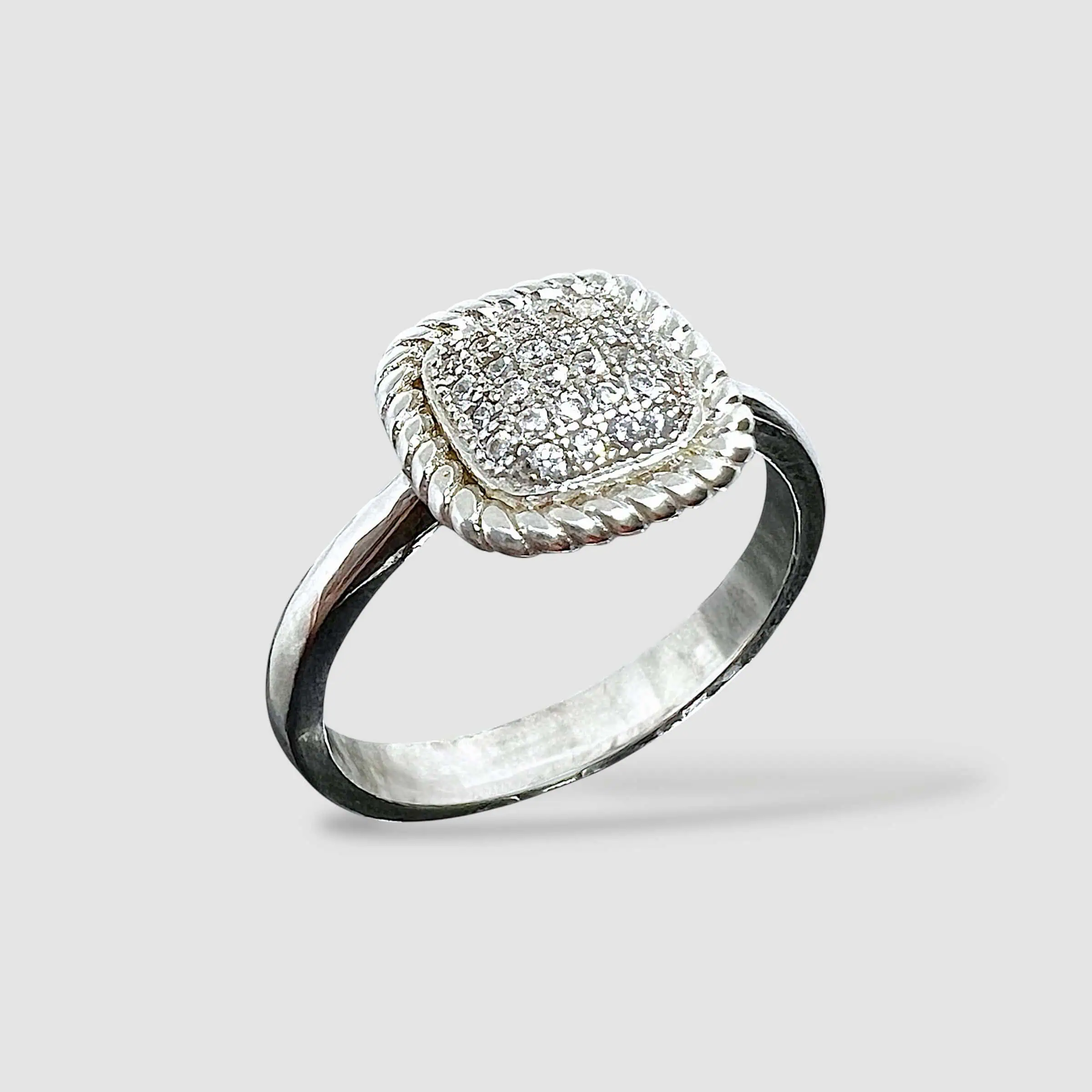 Стильна каблучка з класичним дизайном "Halo". Велика центральна частина оздоблена дрібним цирконом та оточена "рамочкою", що створює ефект максимального об'єму та блиску.