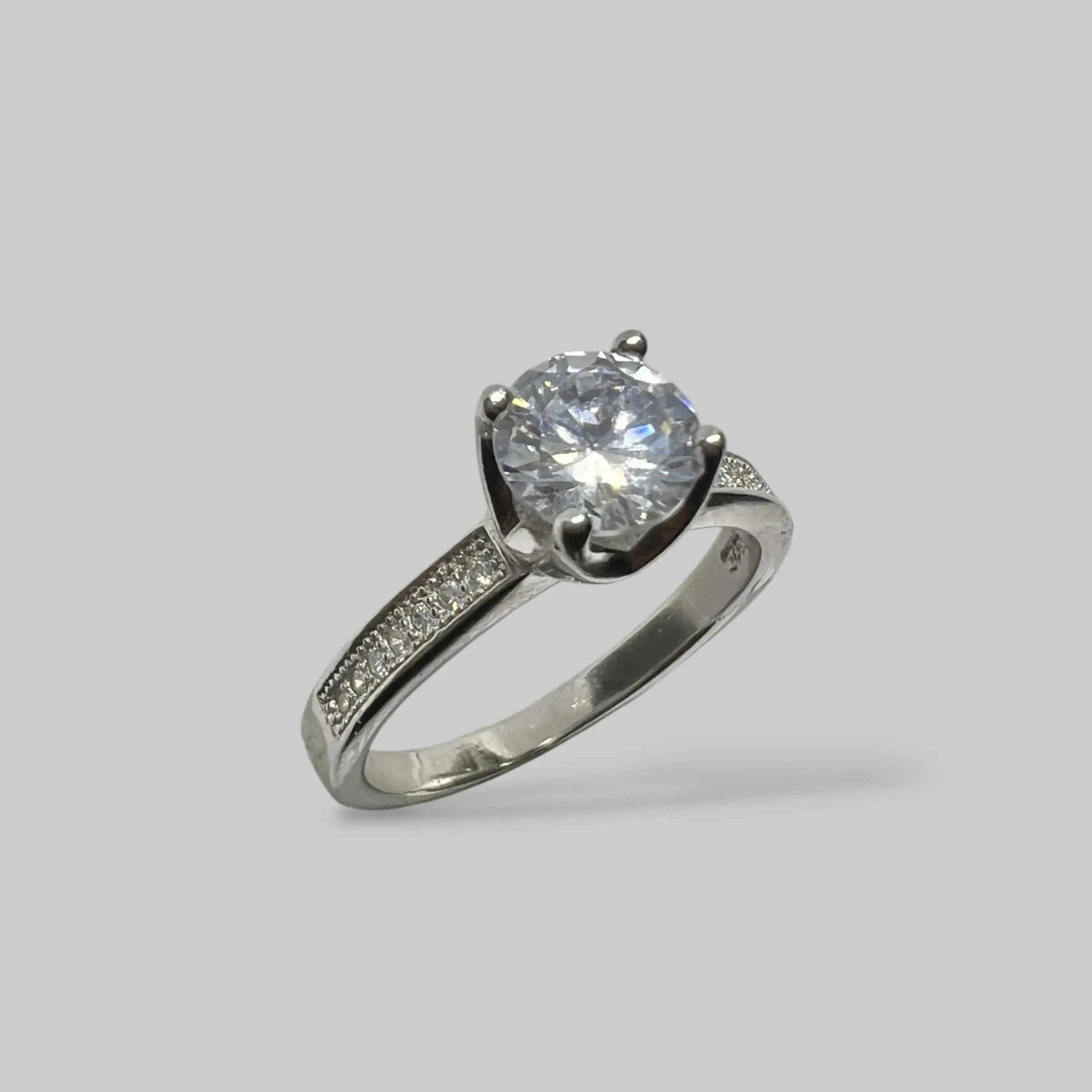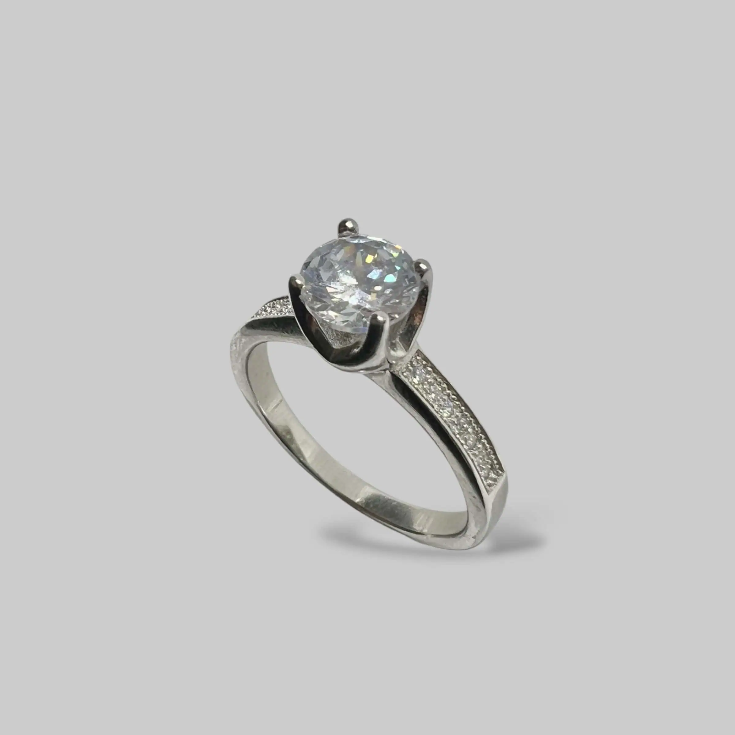 Вишукана прикраса, що акцентує увагу на ідеальному огранюванні центрального кристала. Лаконічний дизайн у поєднанні з іскристими боковими вставками створює розкішний образ.