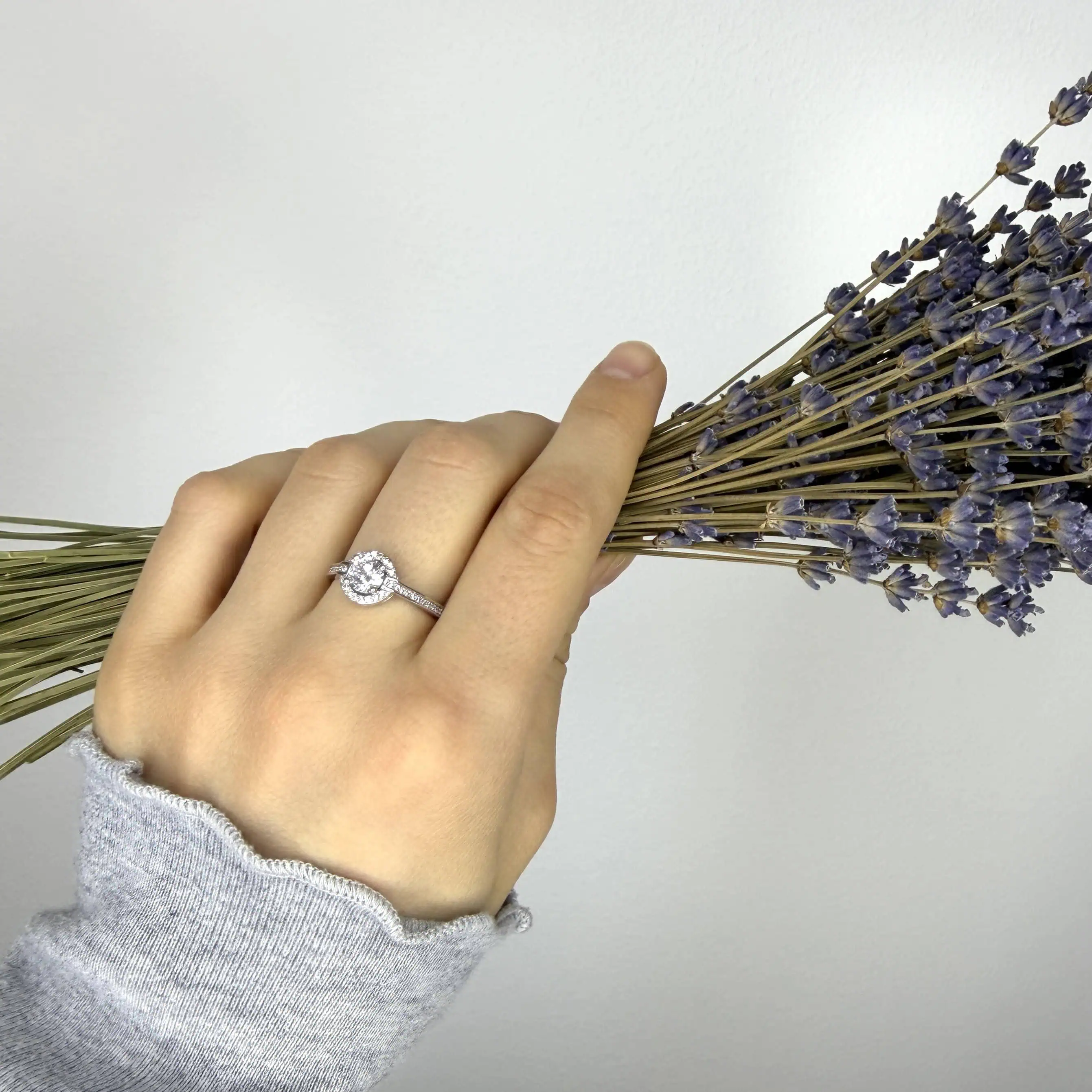 Срібна каблучка "Сяйво" - це сяюча каблучка з розсипом цирконів, виконана в благородному металі, покрита родієм для блиску і стійкості до зносу.