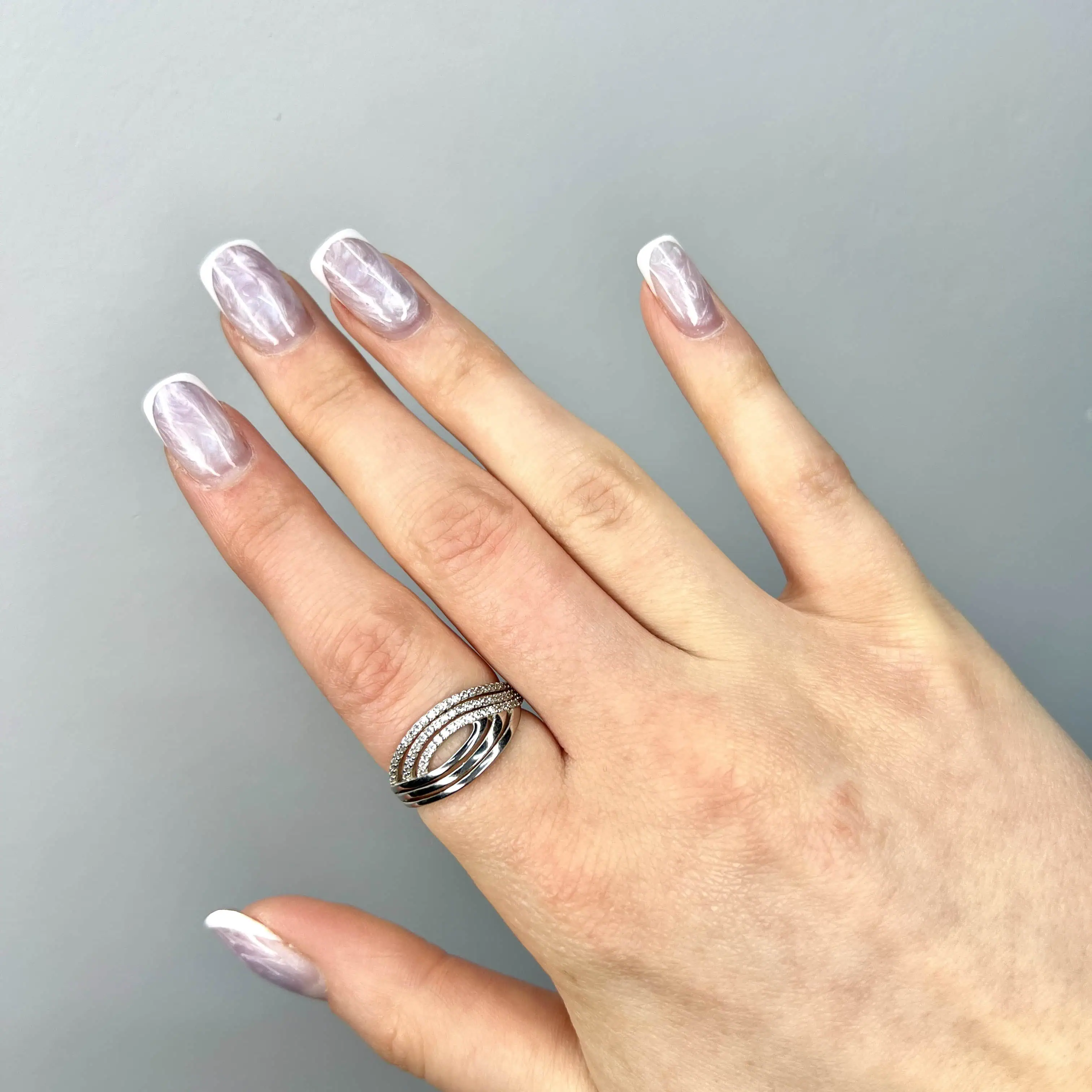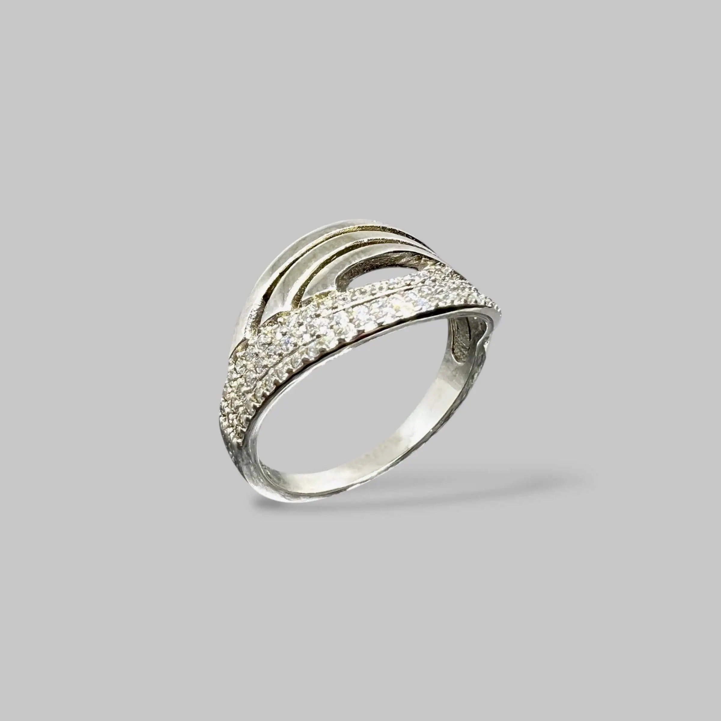 Витончена срібна каблучка з центральним фіанітом класичного огранювання «груша». Камінь оточений сяючим німбом з дрібних кристалів, а тонка шинка, також інкрустована камінням, підкреслює тендітність та благородний стиль прикраси.
