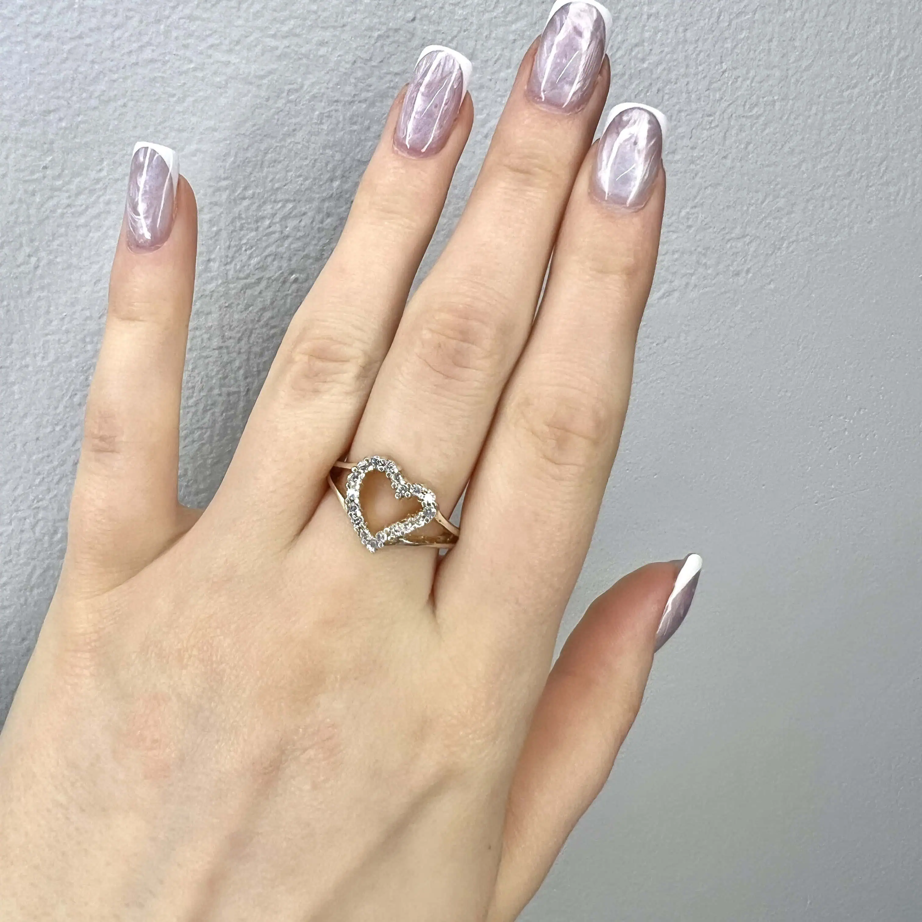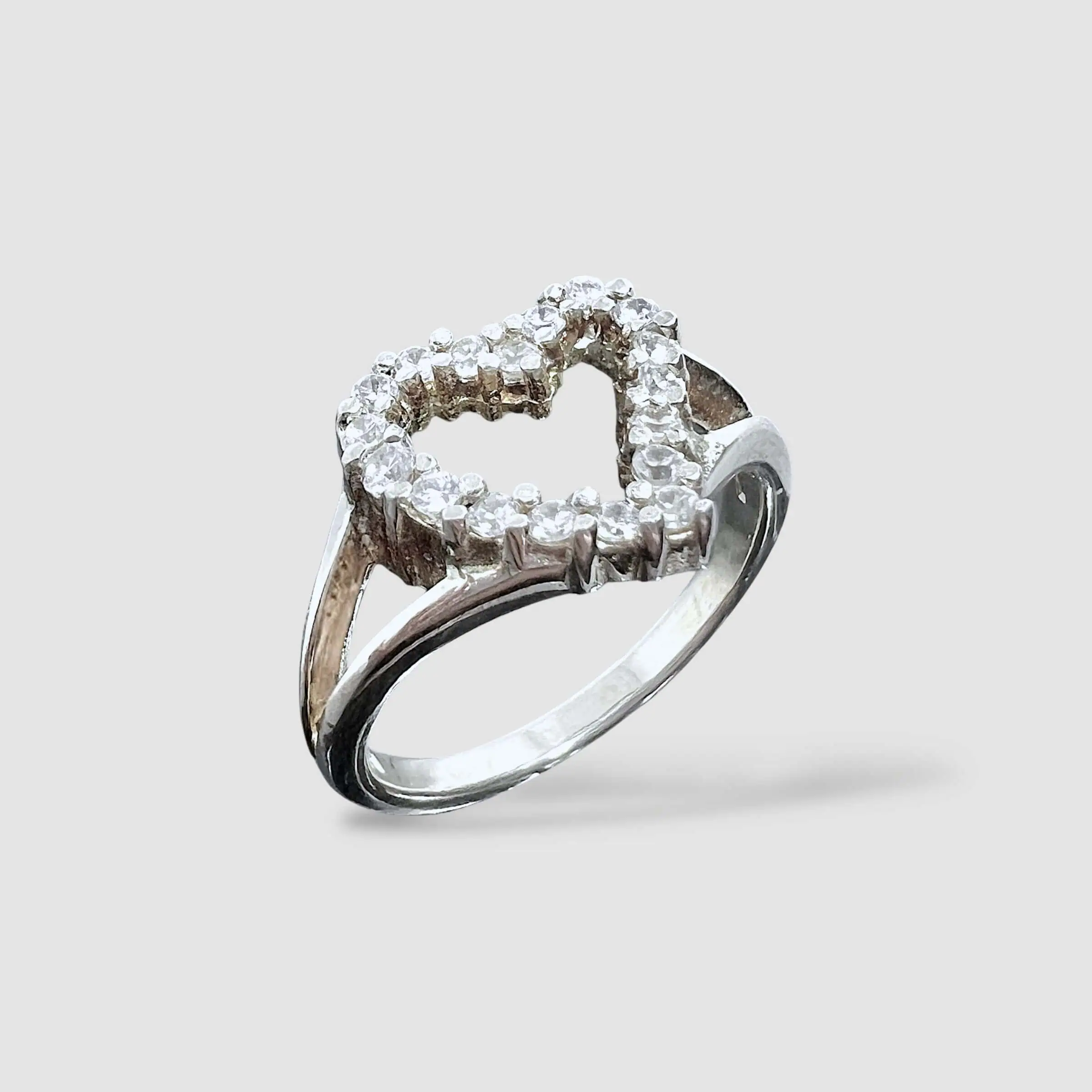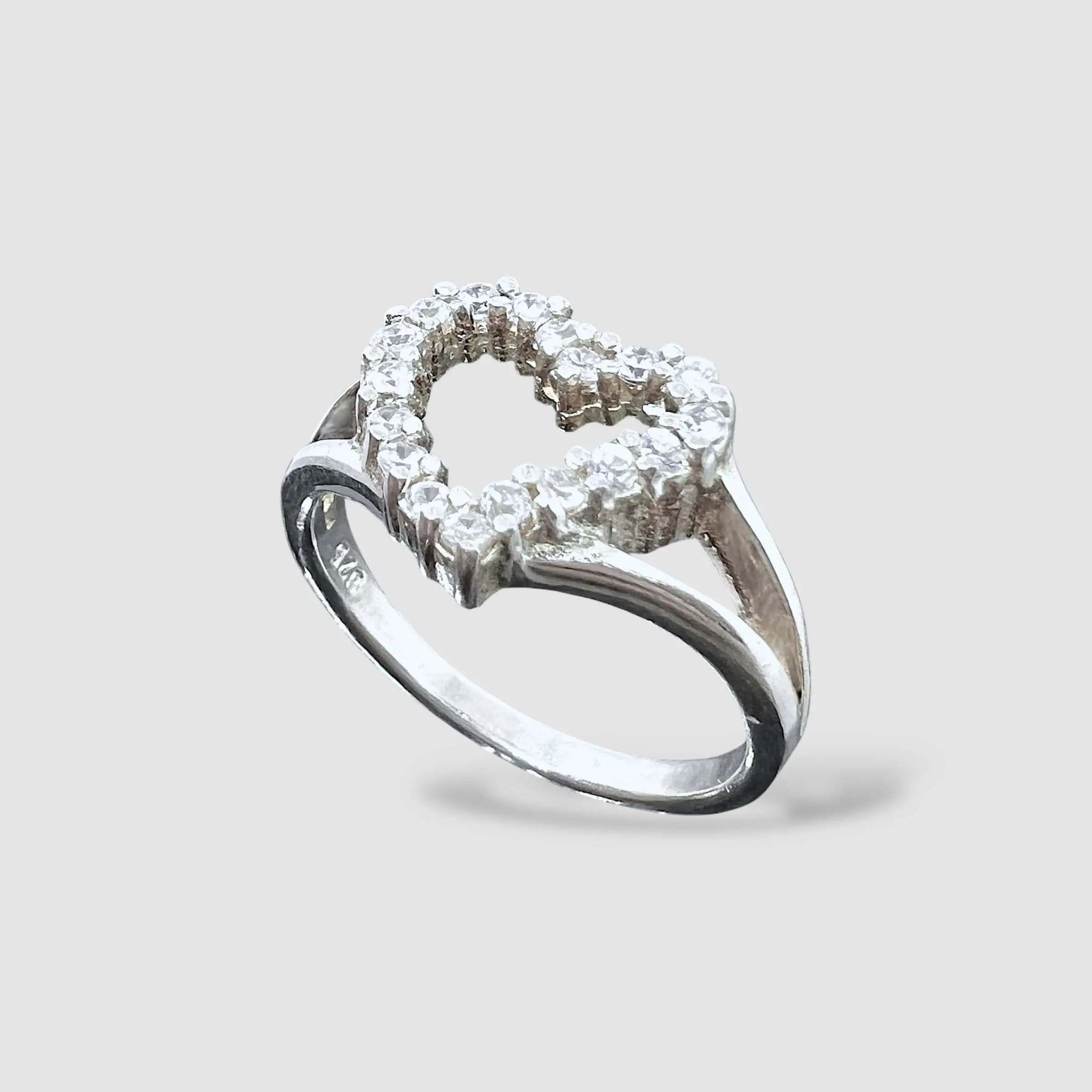 Романтична срібна каблучка з великим центральним елементом у формі серця. Контур серця повністю інкрустований дрібним цирконієм, що додає виробу ніжного сяйва. Вишуканий аксесуар для вираження найщиріших почуттів.