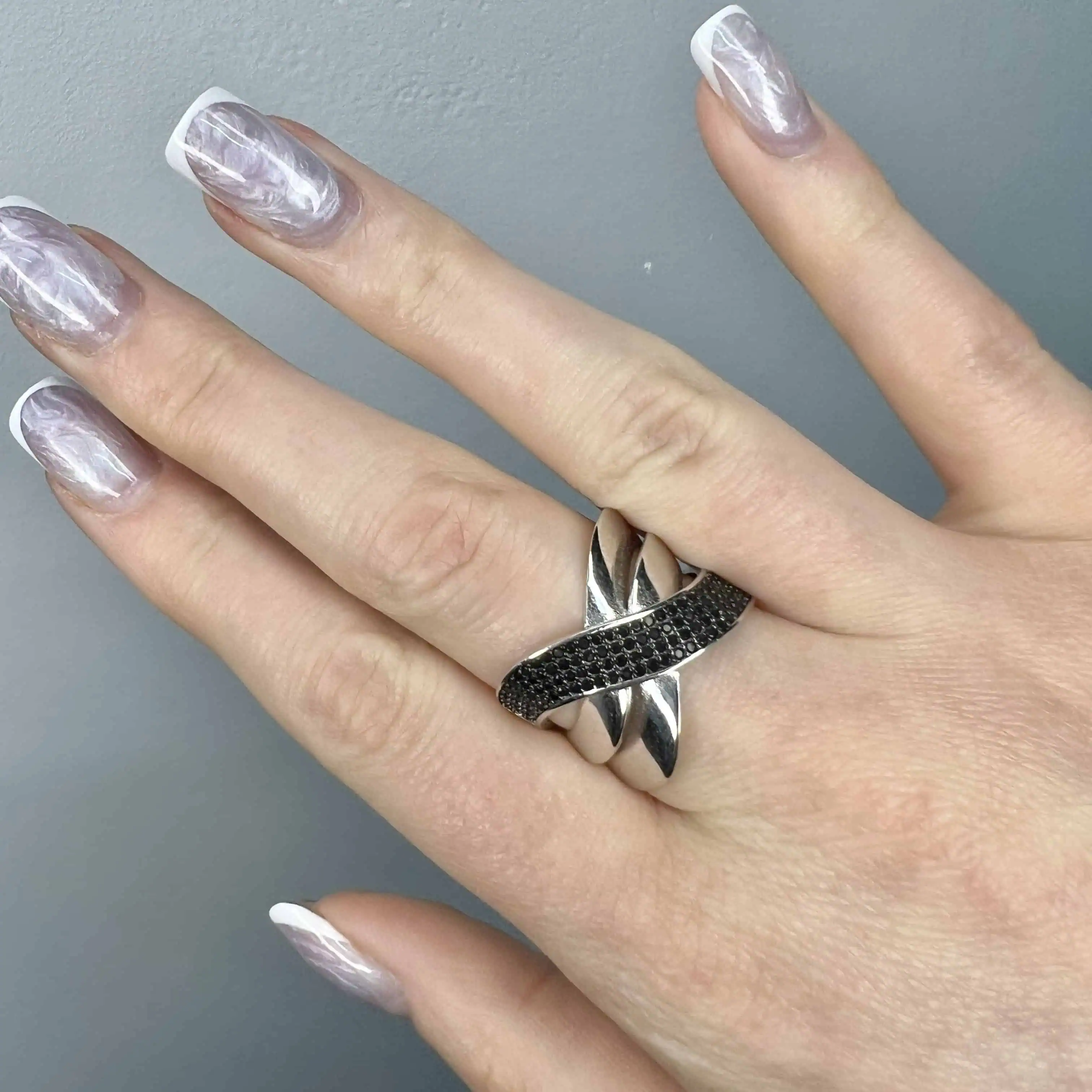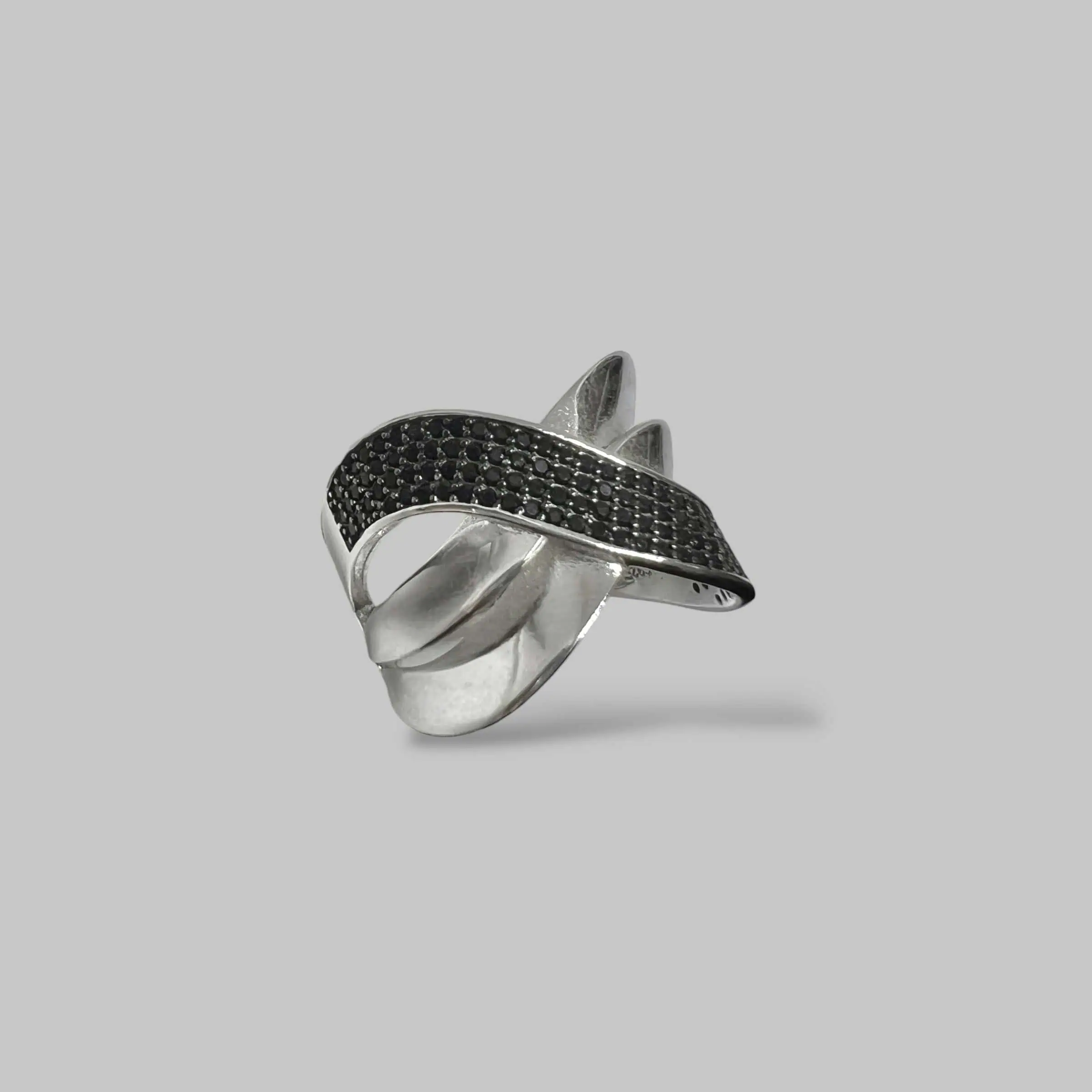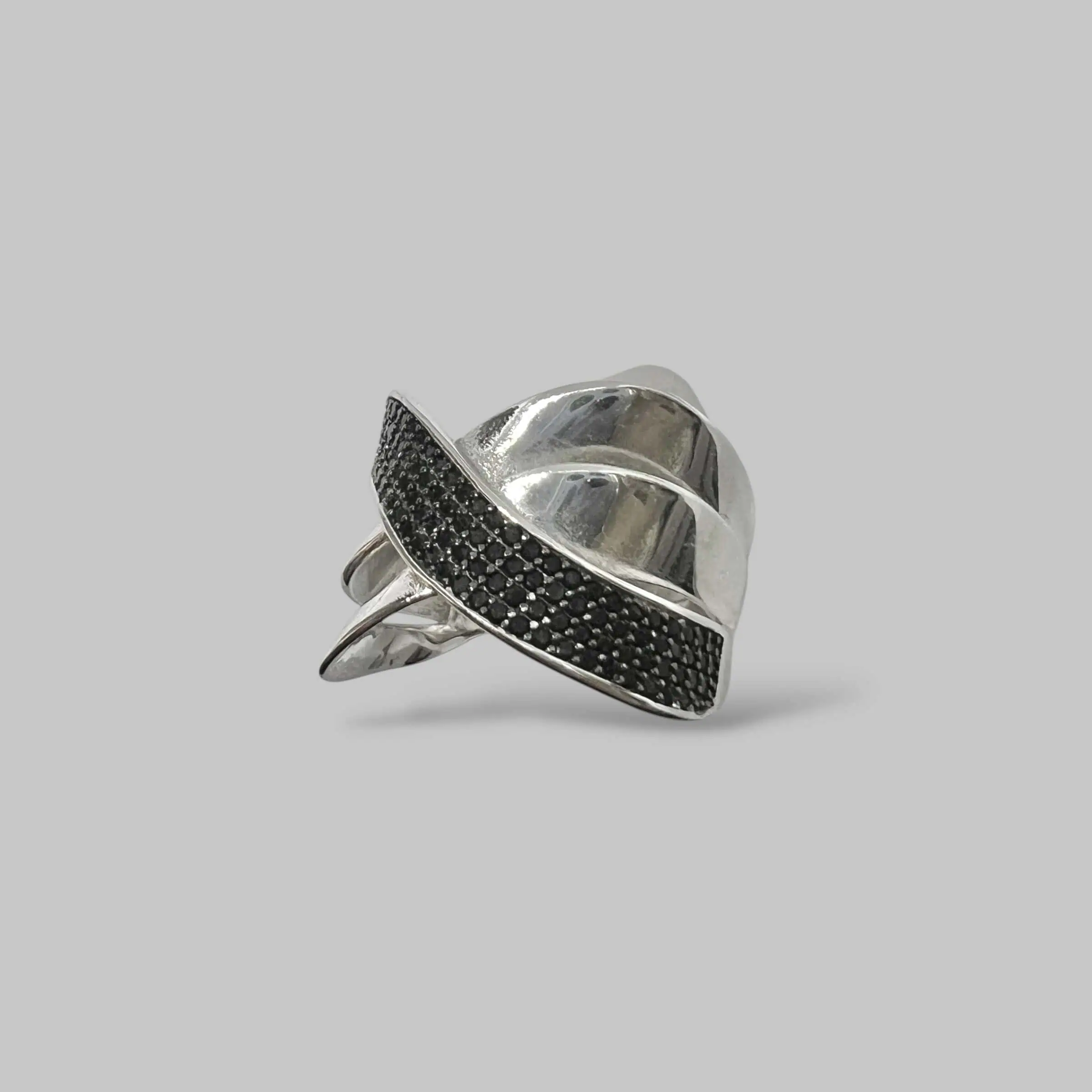 Елегантна та водночас сувора каблучка, що уособлює спокійну енергію місяця. Дизайн ідентичний першій моделі, проте діагональна доріжка виконана з чорних цирконів, що додає виробу містичності та глибини.