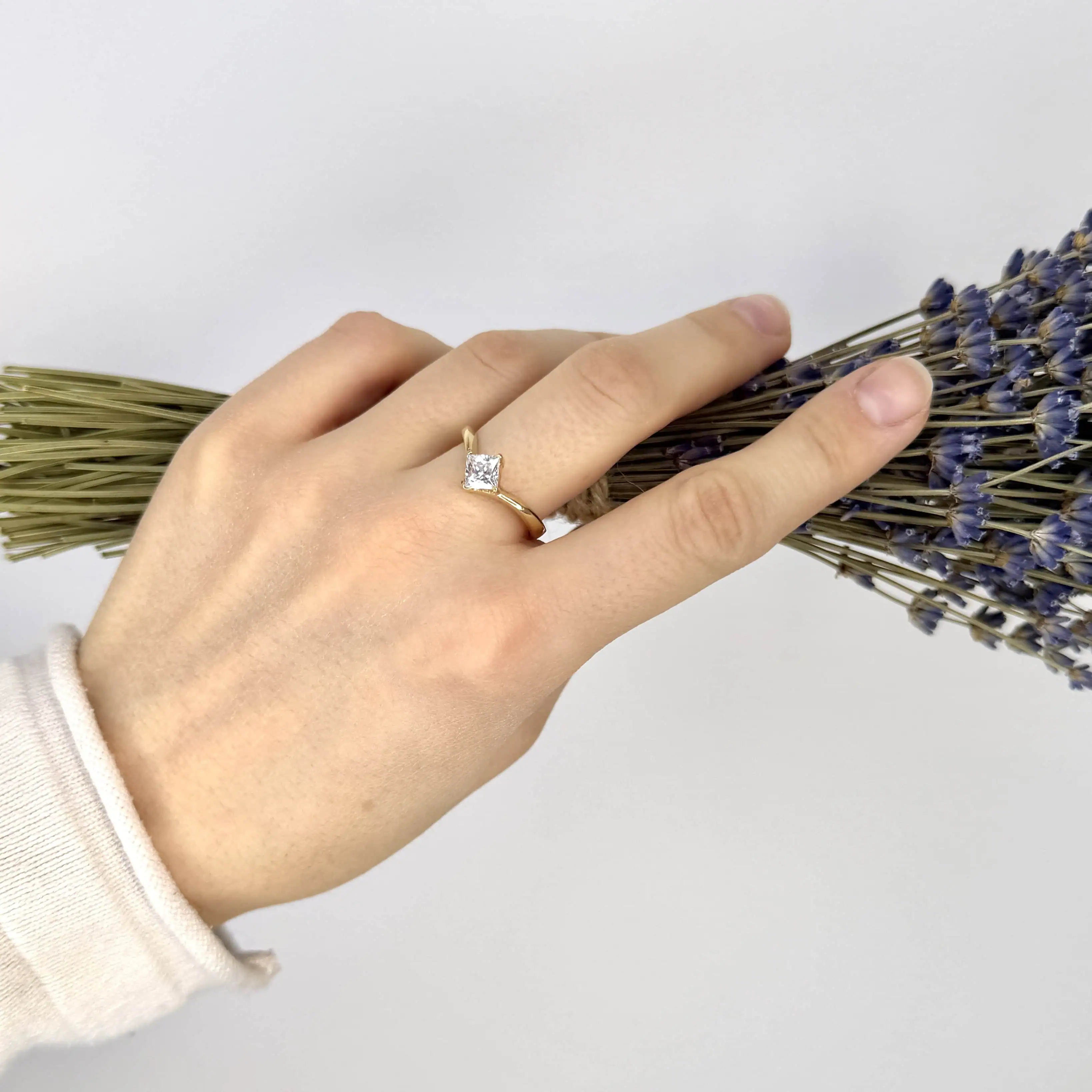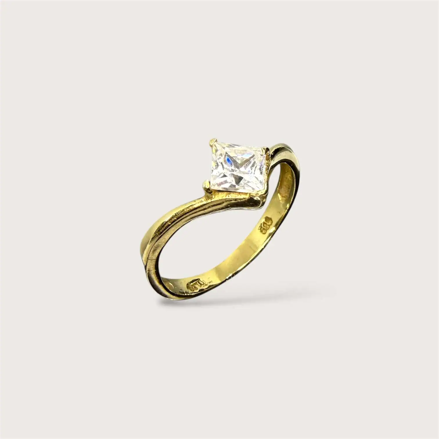 Золота каблучка "Геометрія" з сяючим квадратним цирконом - це мінімаліз і вишуканість на вашому пальці.
