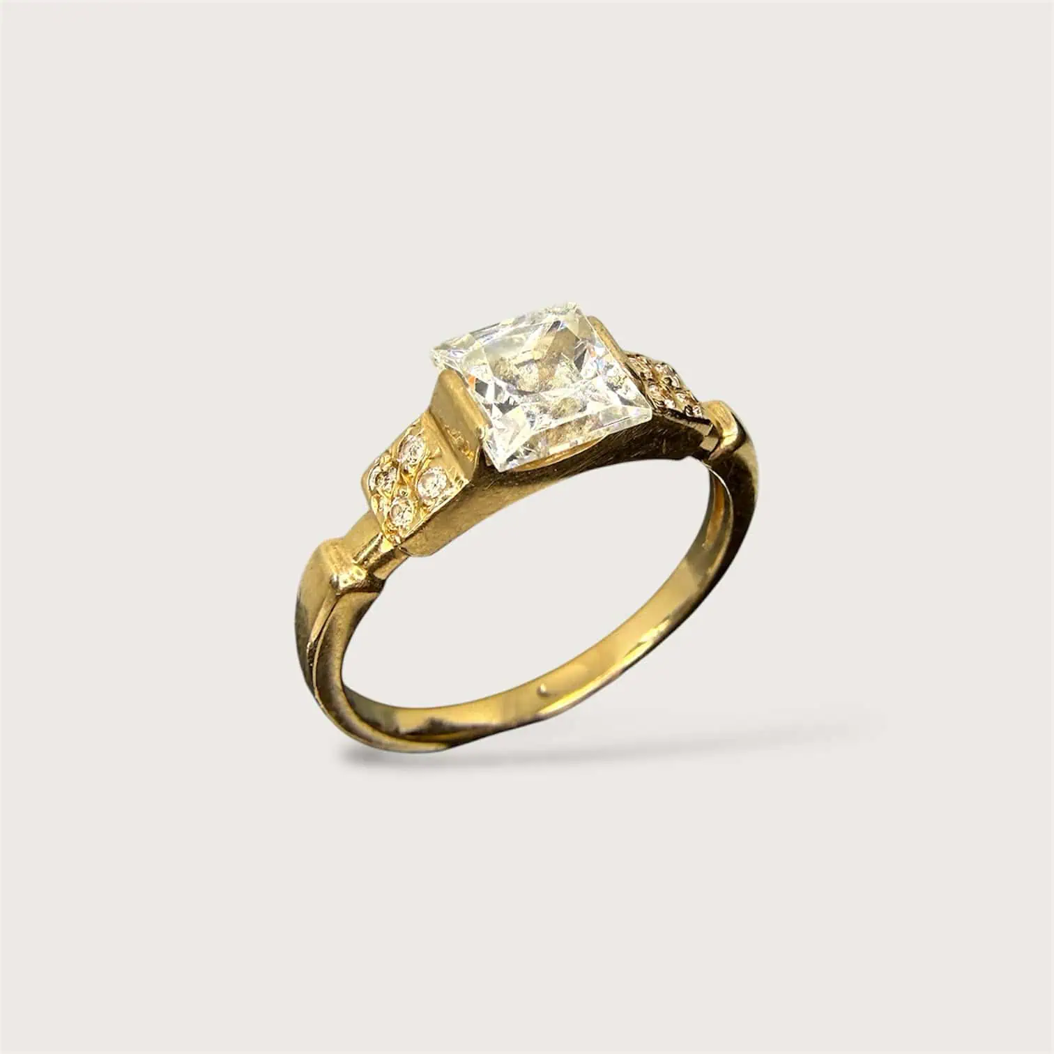 Золота каблучка " Куб" інкрустована квадратним цирконом. Це стиль в благородному металі.