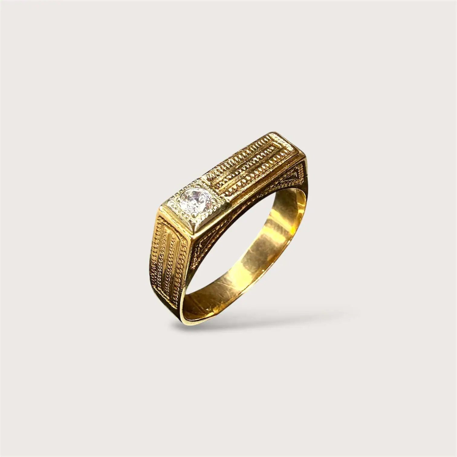 Золота печатка "Цеглина" - це невелика за розміром золота прикраса, локанічної форми та акцентним цирконом.